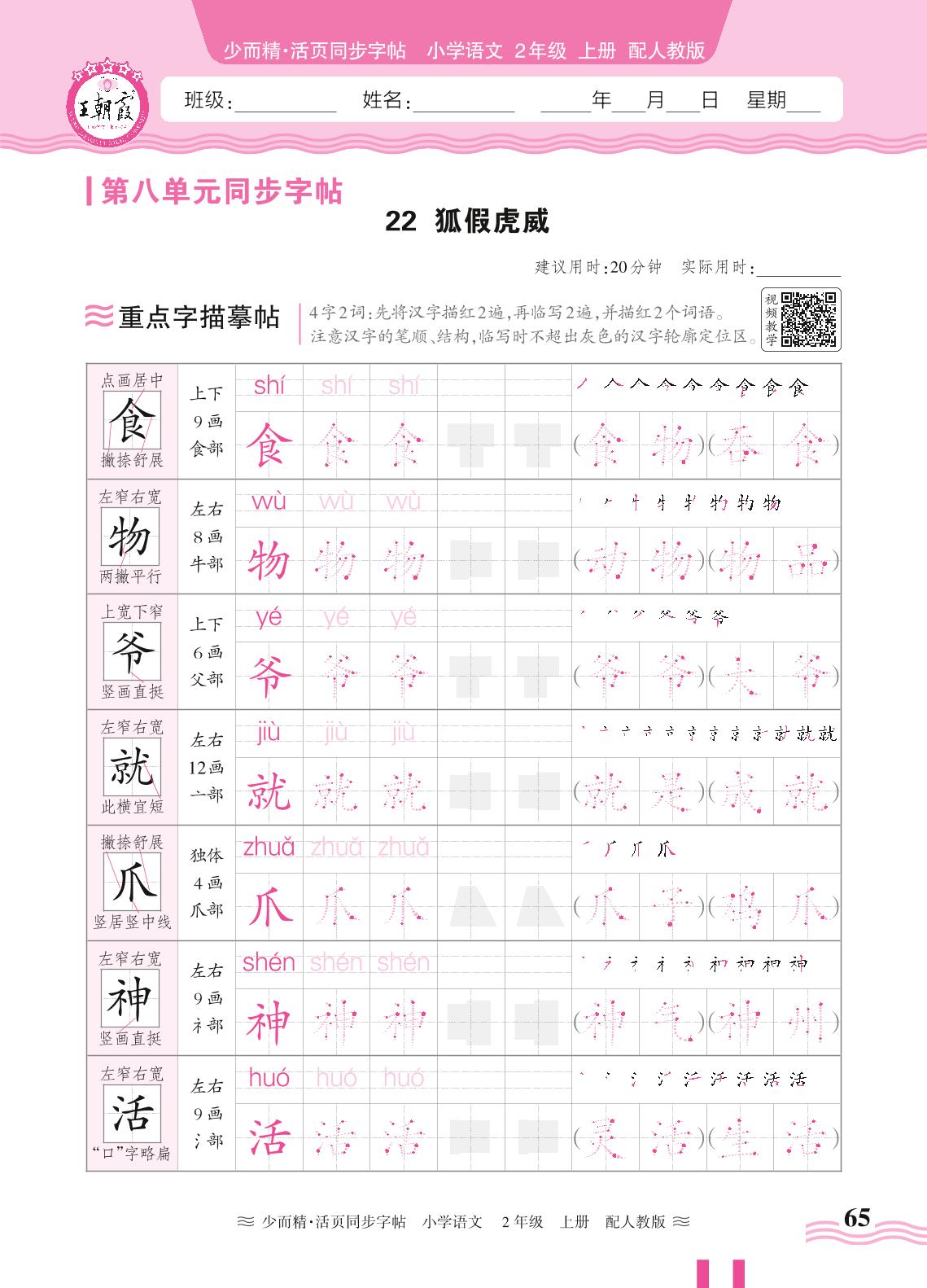 2024秋上册二年级语文人教版 第八单元同步字帖——22. 狐假虎威