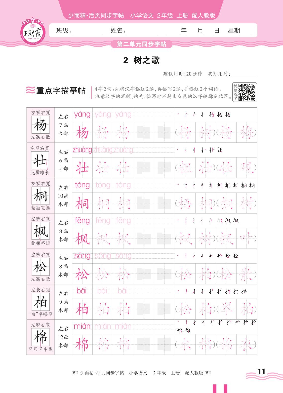 2024秋上册二年级语文人教版 第二单元同步字帖——2. 树之歌