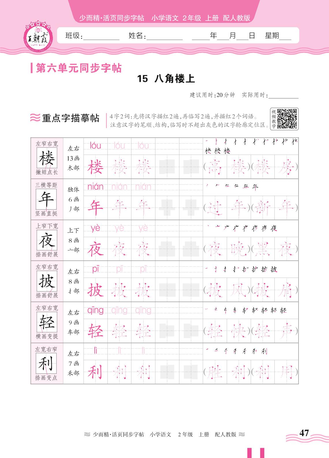 2024秋上册二年级语文人教版 第六单元同步字帖——15. 八角楼上