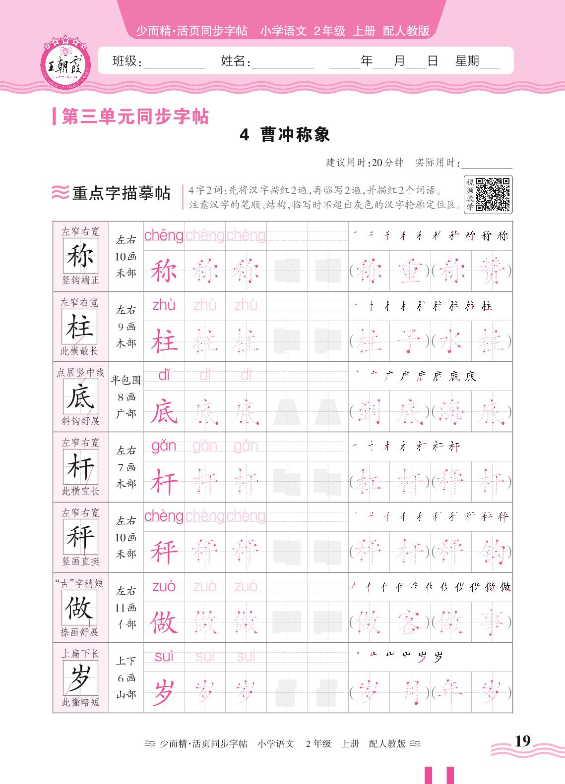 2024秋上册二年级语文人教版 第三单元同步字帖——4. 曹冲称象