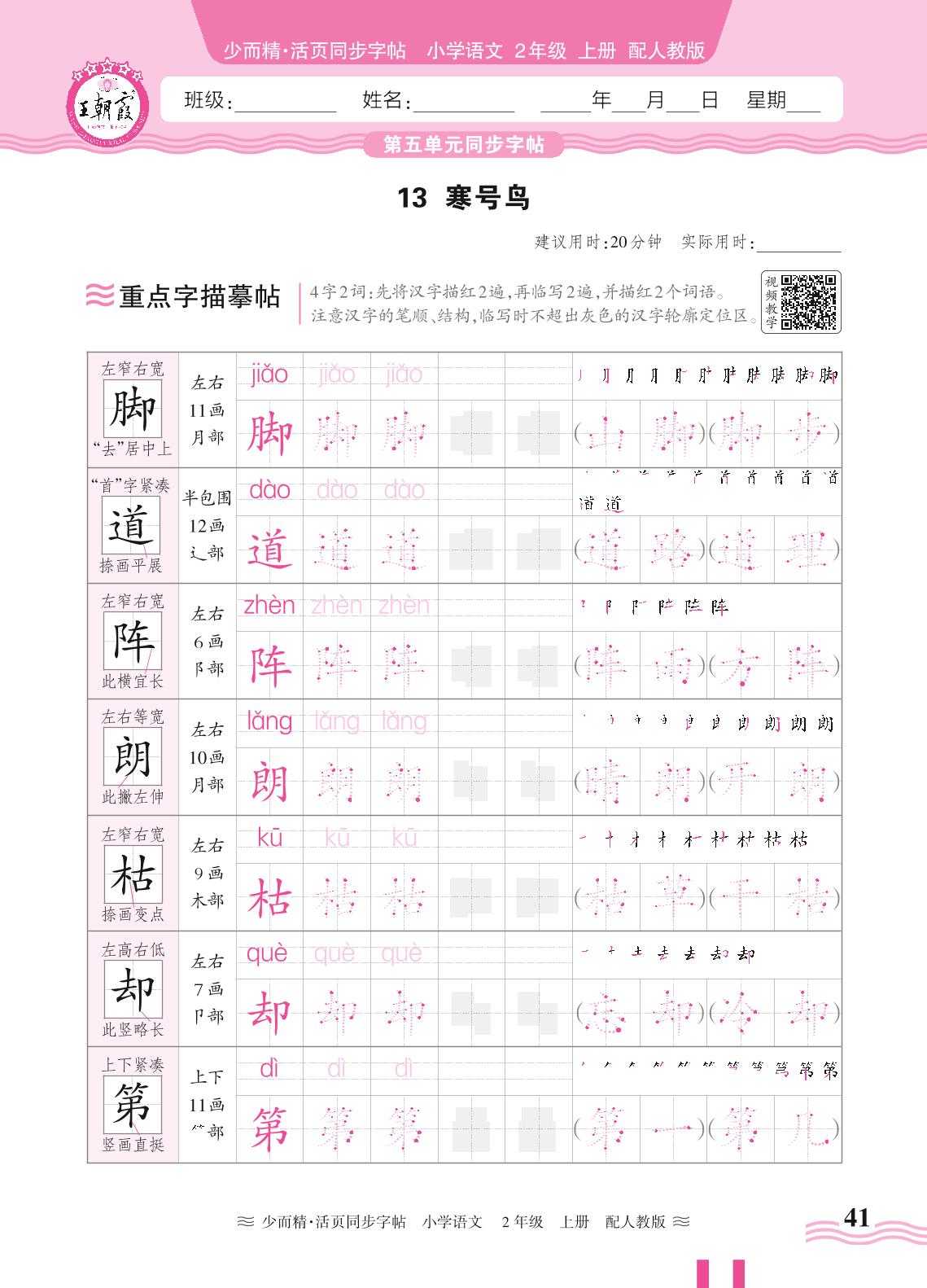2024秋上册二年级语文人教版 第五单元同步字帖——13. 寒号鸟