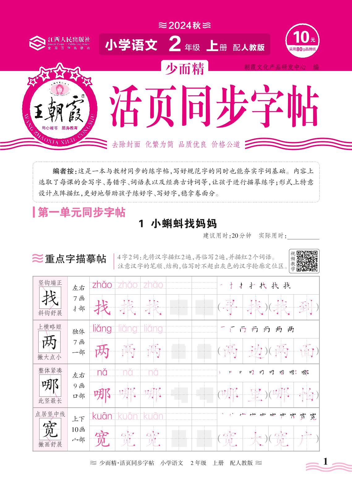 2024秋上册二年级语文人教版 第一单元同步字帖——1. 小蝌蚪找妈妈