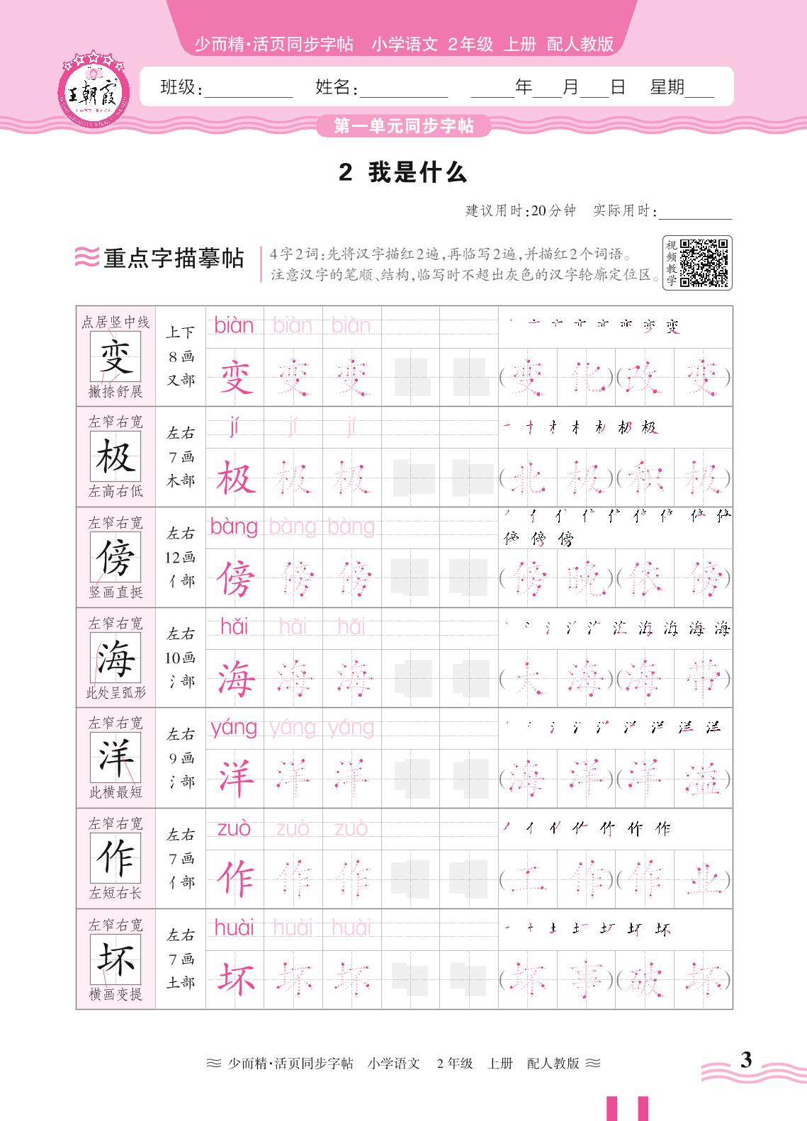 2024秋上册二年级语文人教版 第一单元同步字帖——2. 我是什么