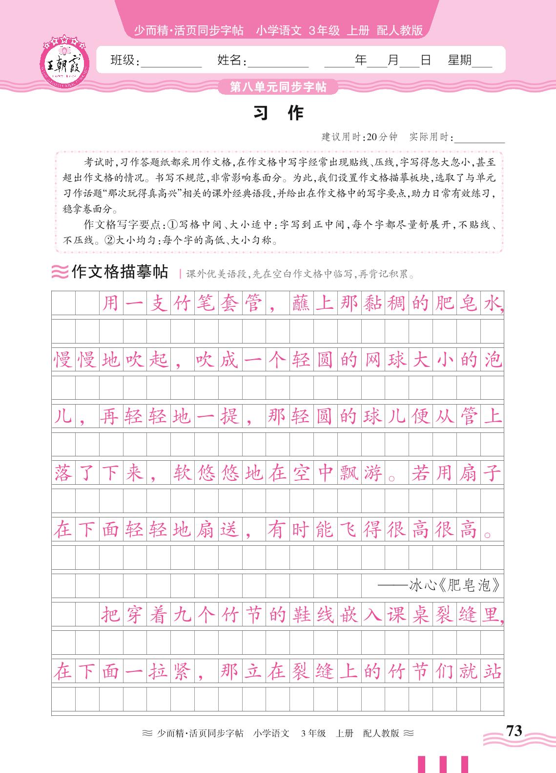 2024秋上册三年级语文人教版 第八单元同步字帖——习作