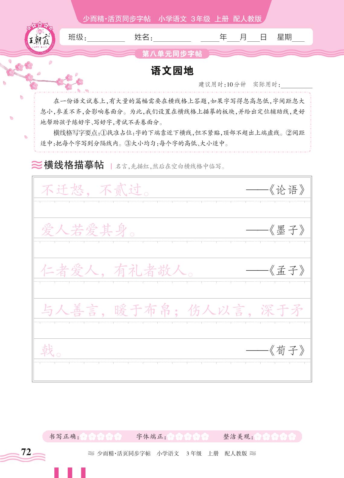2024秋上册三年级语文人教版 第八单元同步字帖——语文园地