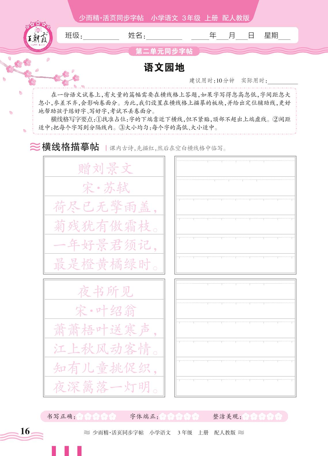 2024秋上册三年级语文人教版 第二单元同步字帖——语文园地