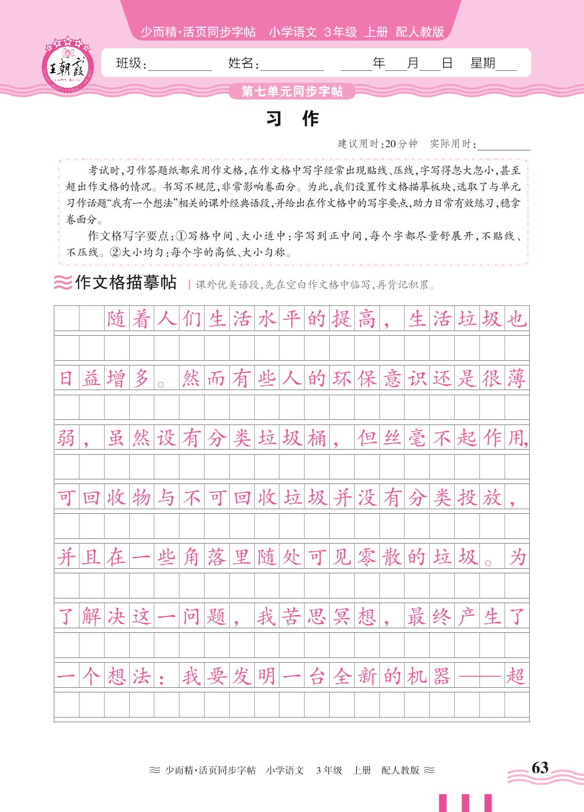 2024秋上册三年级语文人教版 第七单元同步字帖——习作