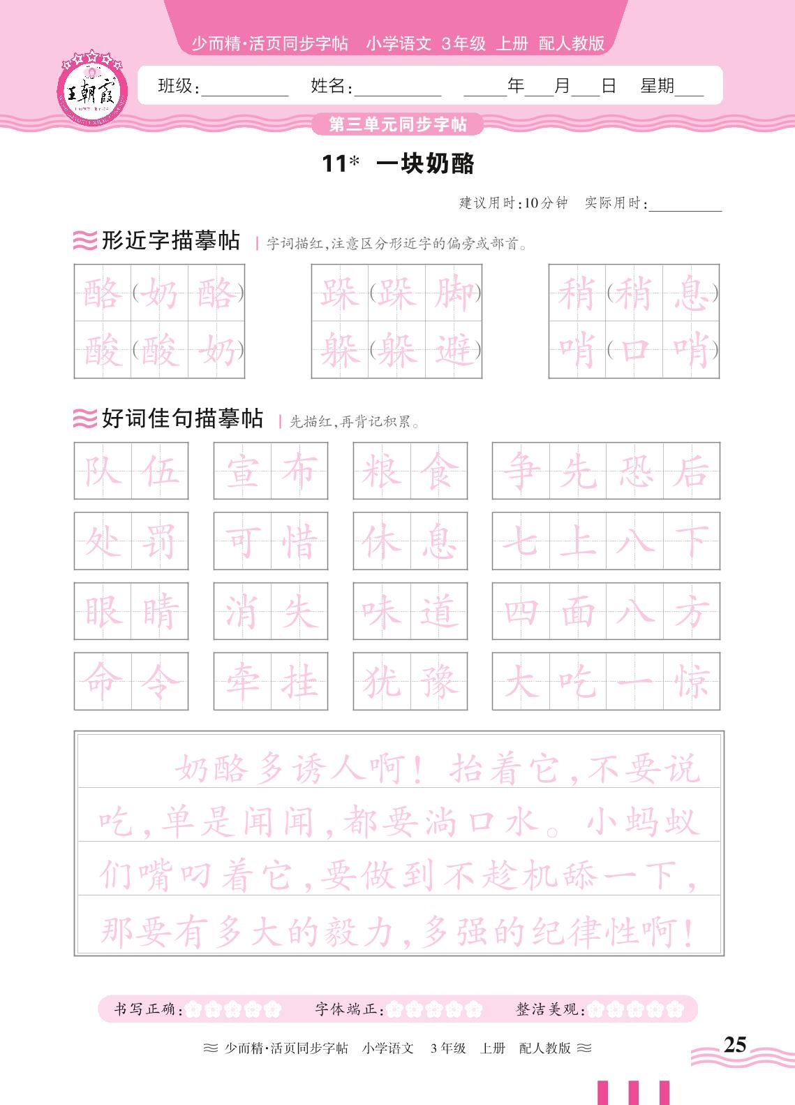 2024秋上册三年级语文人教版 第三单元同步字帖——11. 一块奶酪