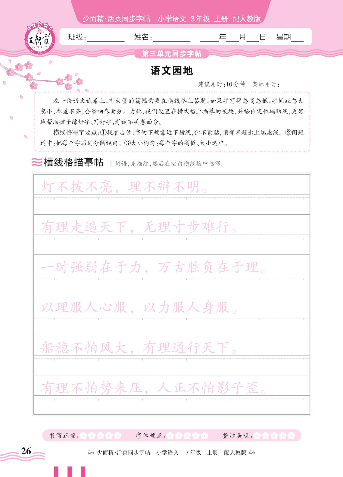 2024秋上册三年级语文人教版 第三单元同步字帖——语文园地