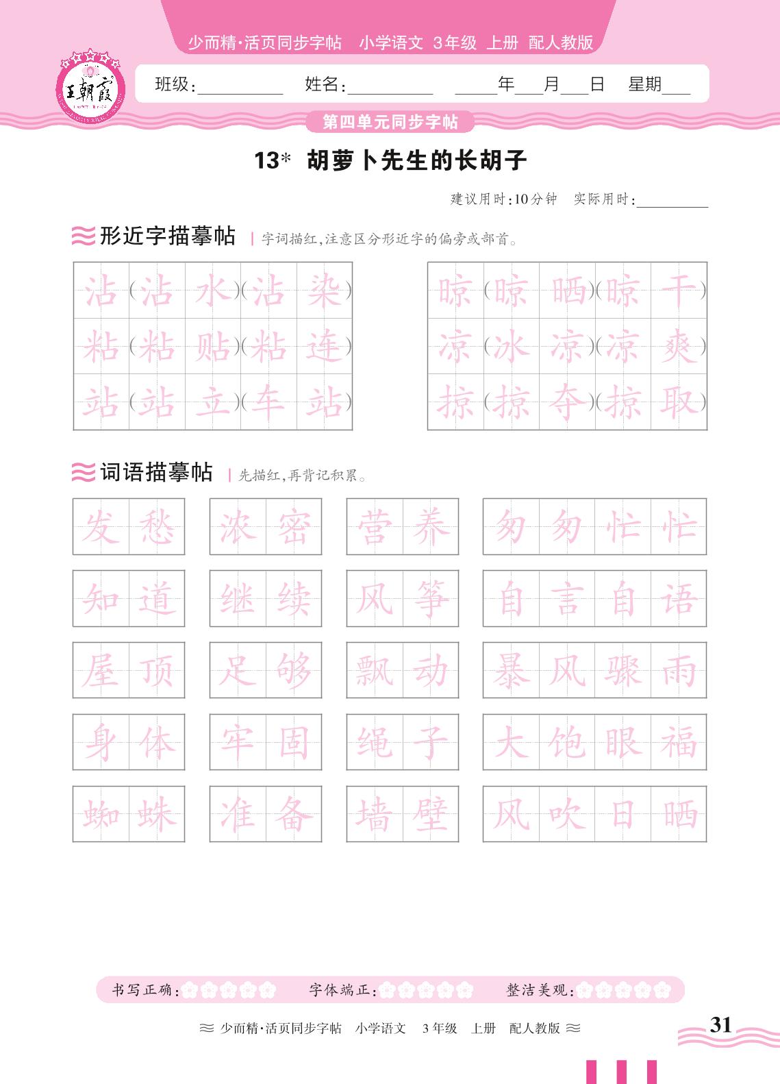 2024秋上册三年级语文人教版 第四单元同步字帖——13. 胡萝卜先生的长胡子