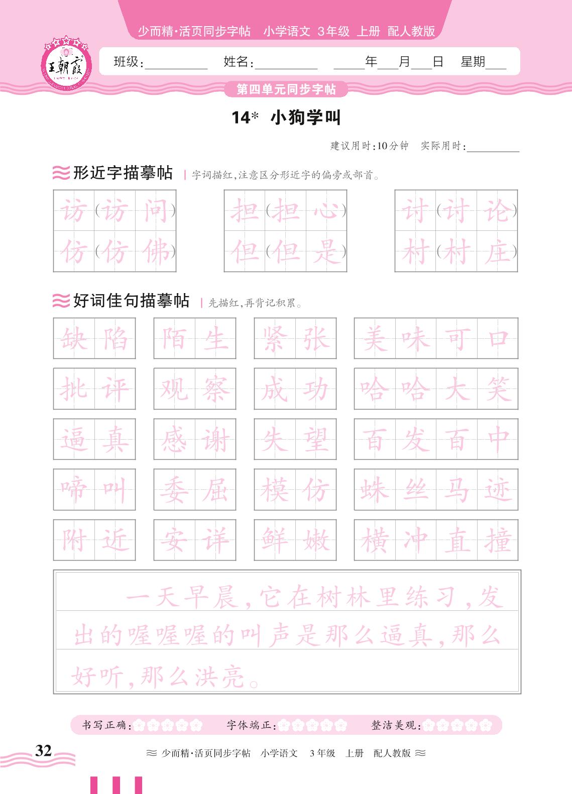 2024秋上册三年级语文人教版 第四单元同步字帖——14. 小狗学叫