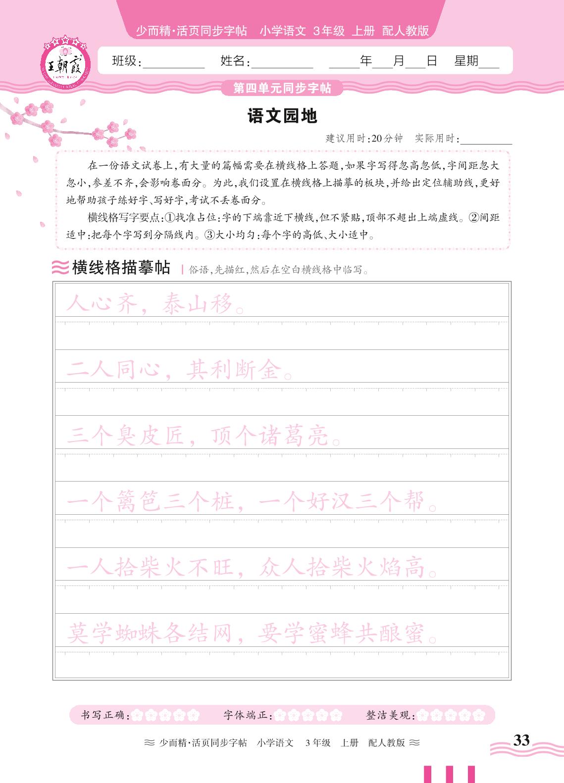 2024秋上册三年级语文人教版 第四单元同步字帖——语文园地