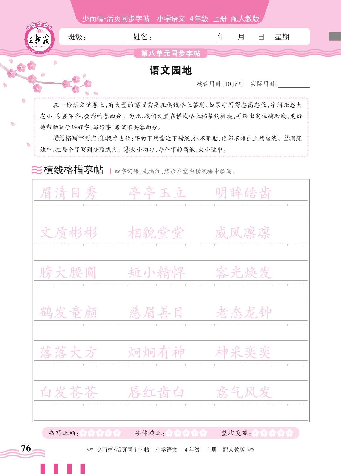 2024秋上册四年级语文人教版 第八单元同步字帖——语文园地