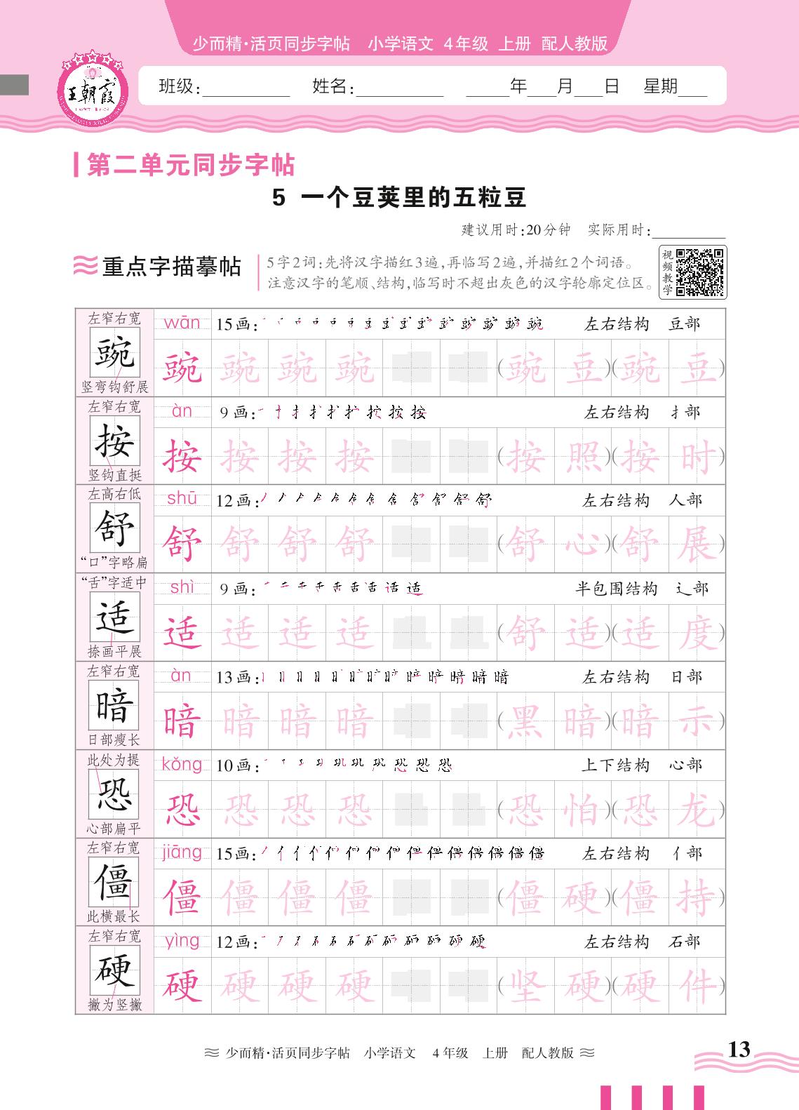 2024秋上册四年级语文人教版 第二单元同步字帖——5. 一个豆荚里的五粒豆
