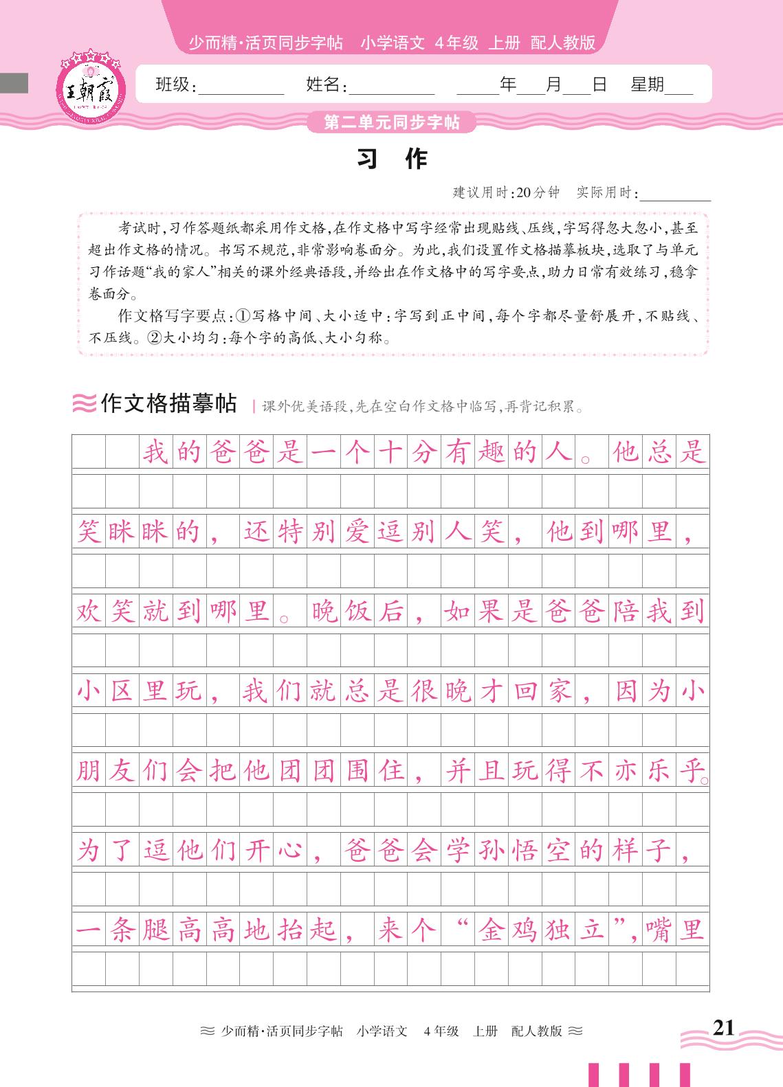 2024秋上册四年级语文人教版 第二单元同步字帖——习作