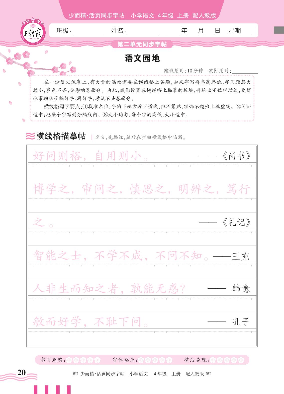 2024秋上册四年级语文人教版 第二单元同步字帖——语文园地