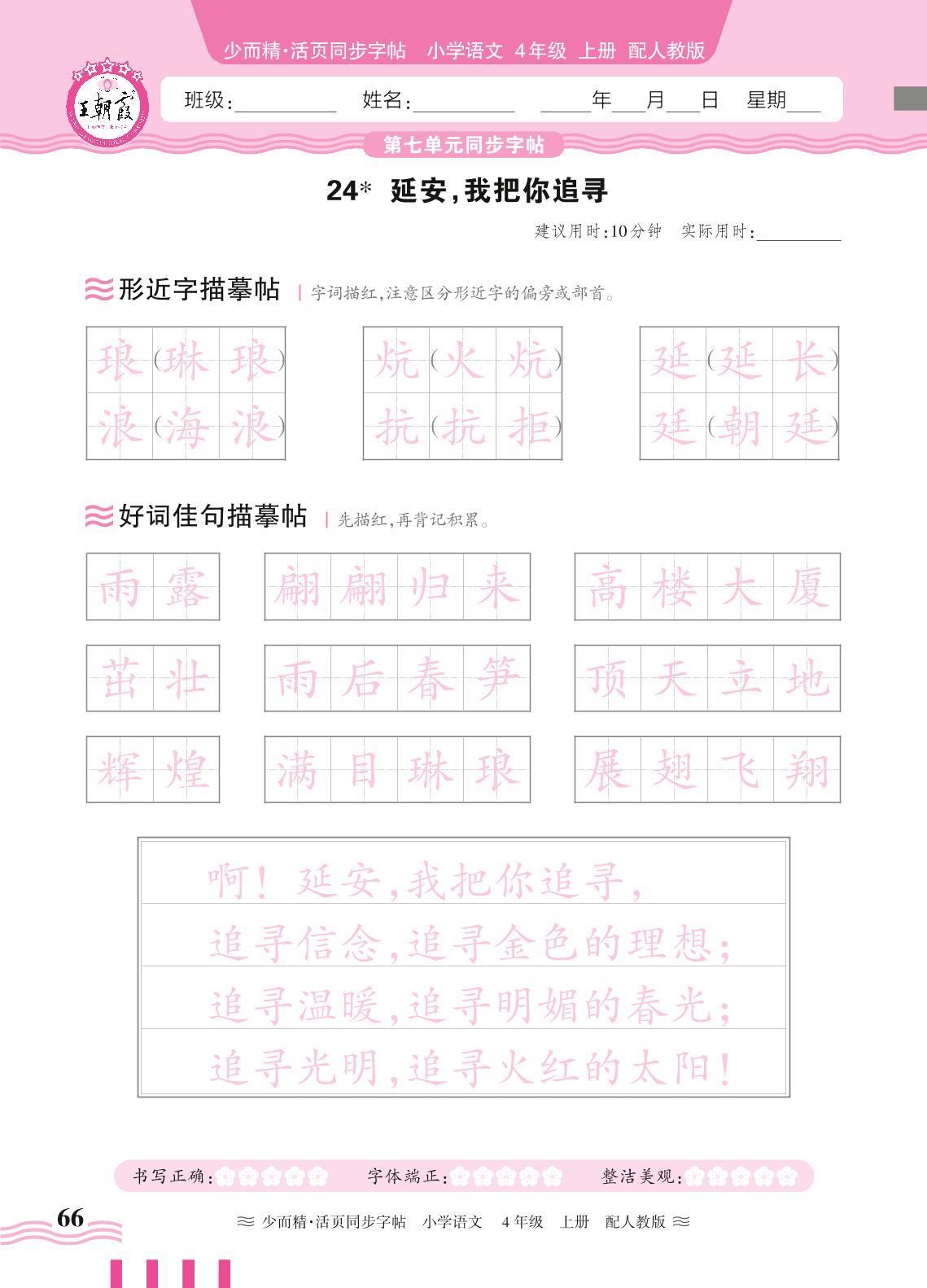 2024秋上册四年级语文人教版 第七单元同步字帖——24. 延安,我把你追寻