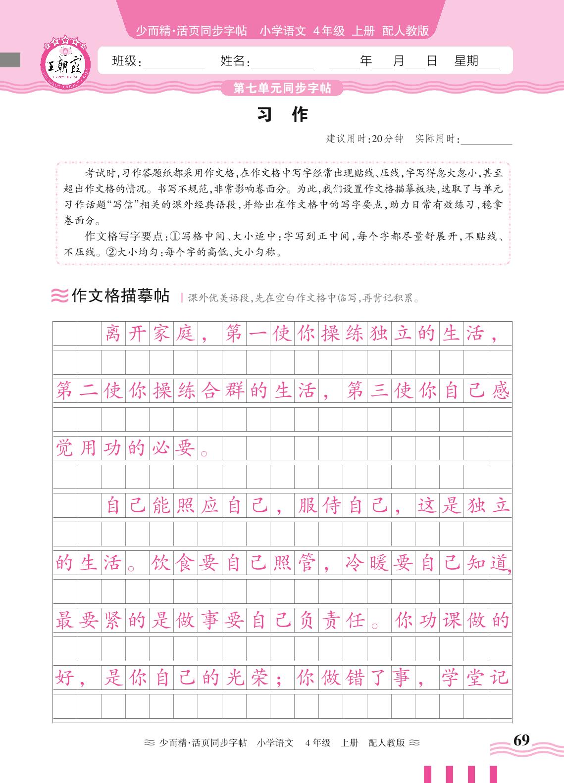 2024秋上册四年级语文人教版 第七单元同步字帖——习作