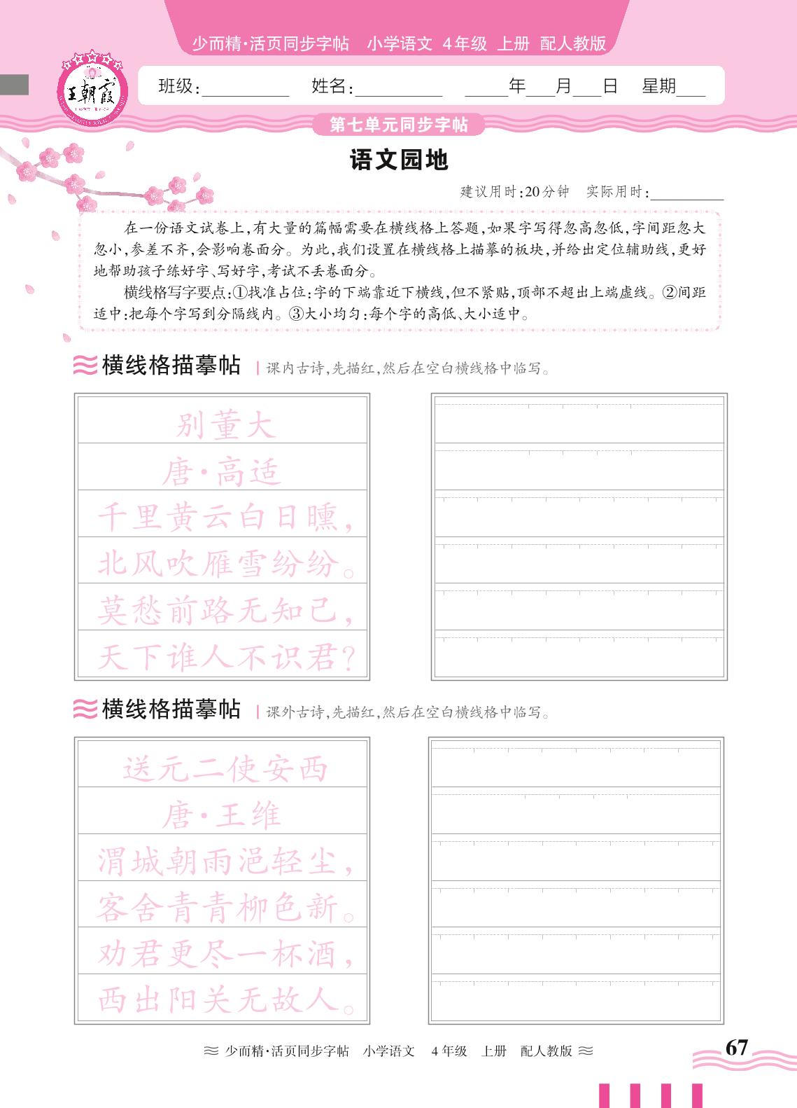 2024秋上册四年级语文人教版 第七单元同步字帖——语文园地