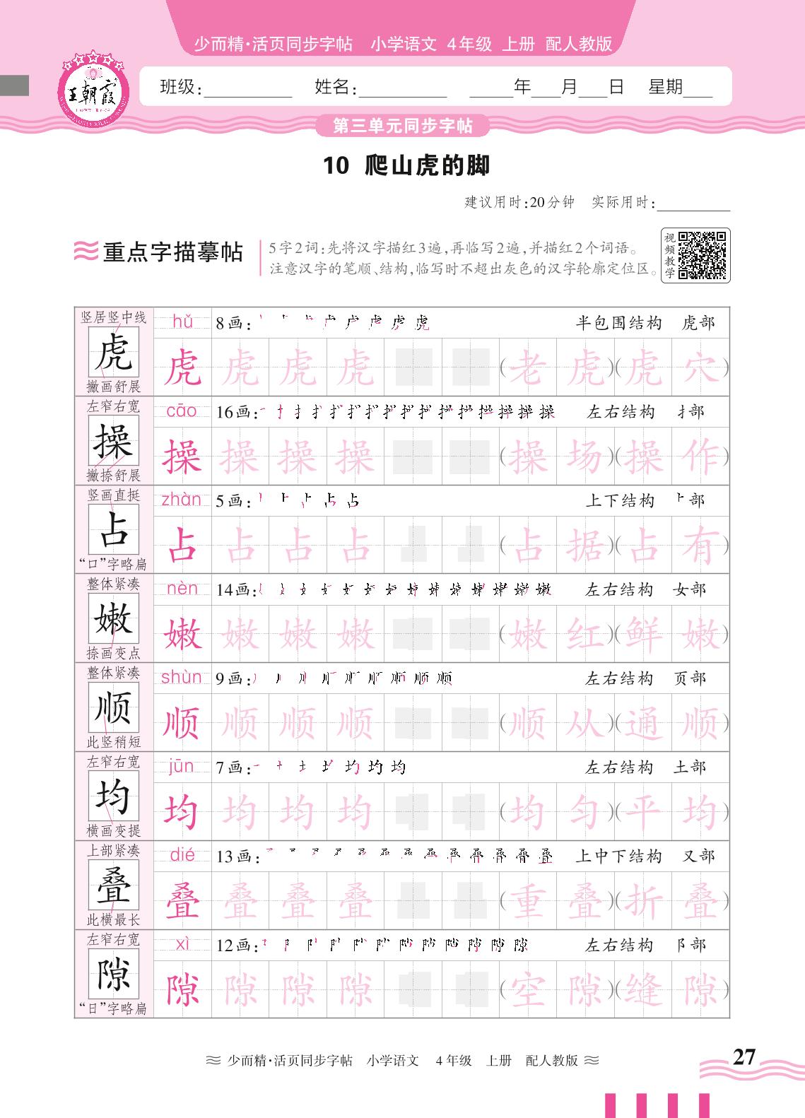 2024秋上册四年级语文人教版 第三单元同步字帖——10. 爬山虎的脚