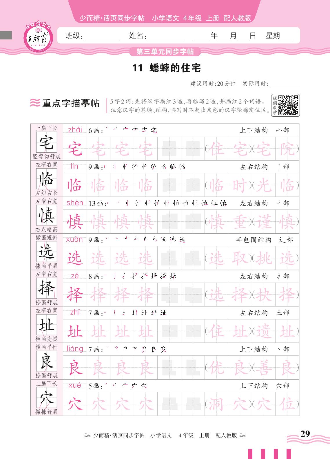 2024秋上册四年级语文人教版 第三单元同步字帖——11. 蟋蟀的住宅