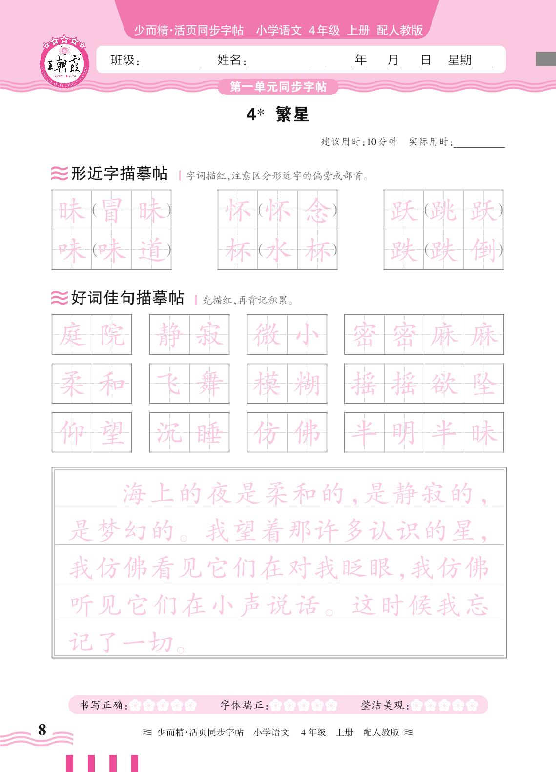 2024秋上册四年级语文人教版 第一单元同步字帖——4. 繁星