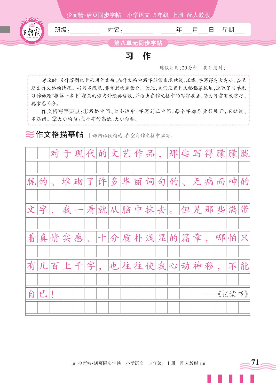 2024秋上册五年级语文人教版 第八单元同步字帖——习作