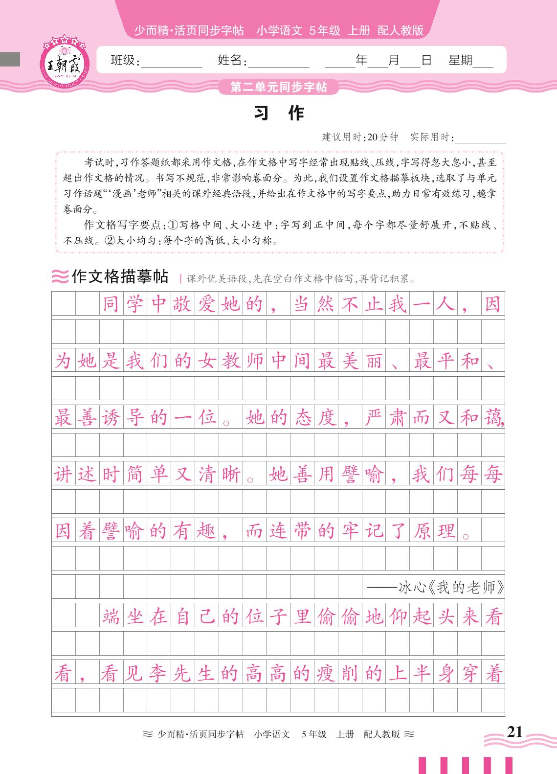 2024秋上册五年级语文人教版 第二单元同步字帖——习作