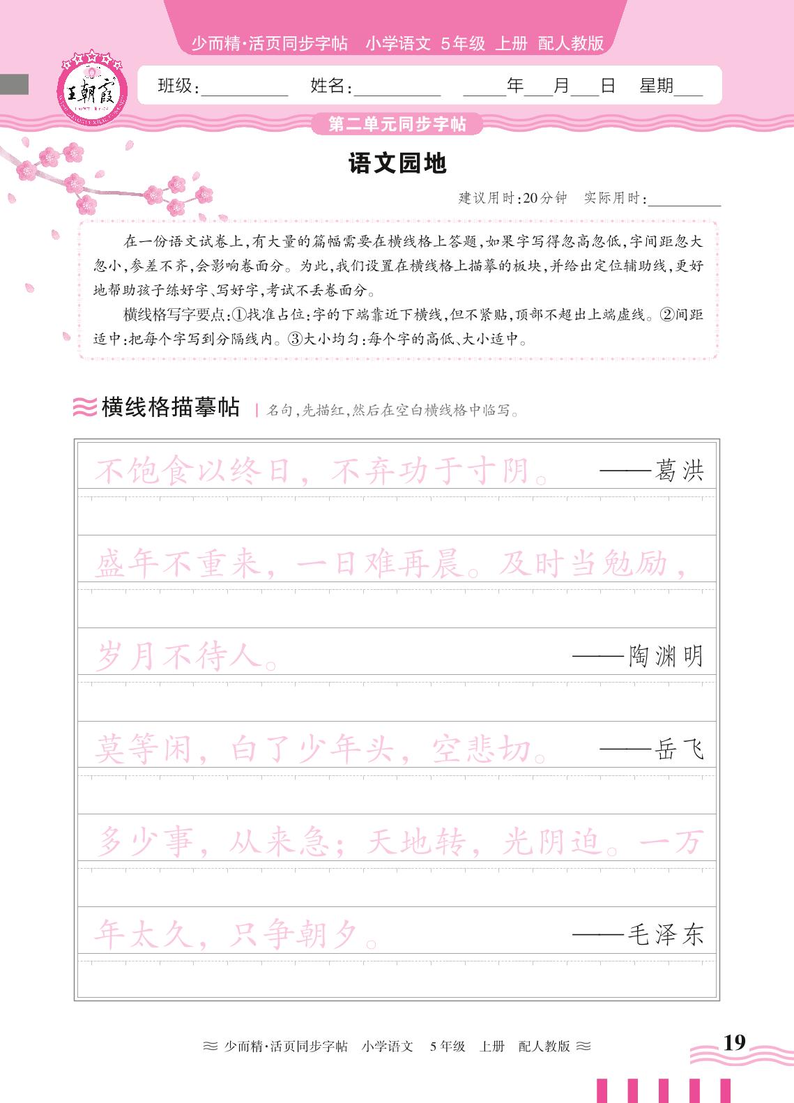 2024秋上册五年级语文人教版 第二单元同步字帖——语文园地