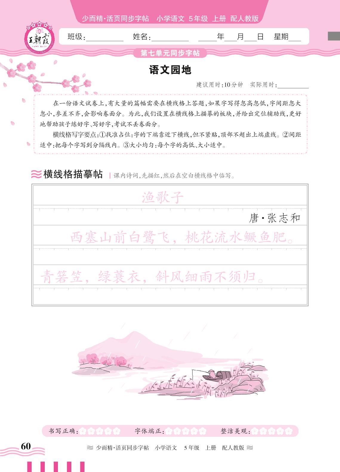 2024秋上册五年级语文人教版 第七单元同步字帖——语文园地