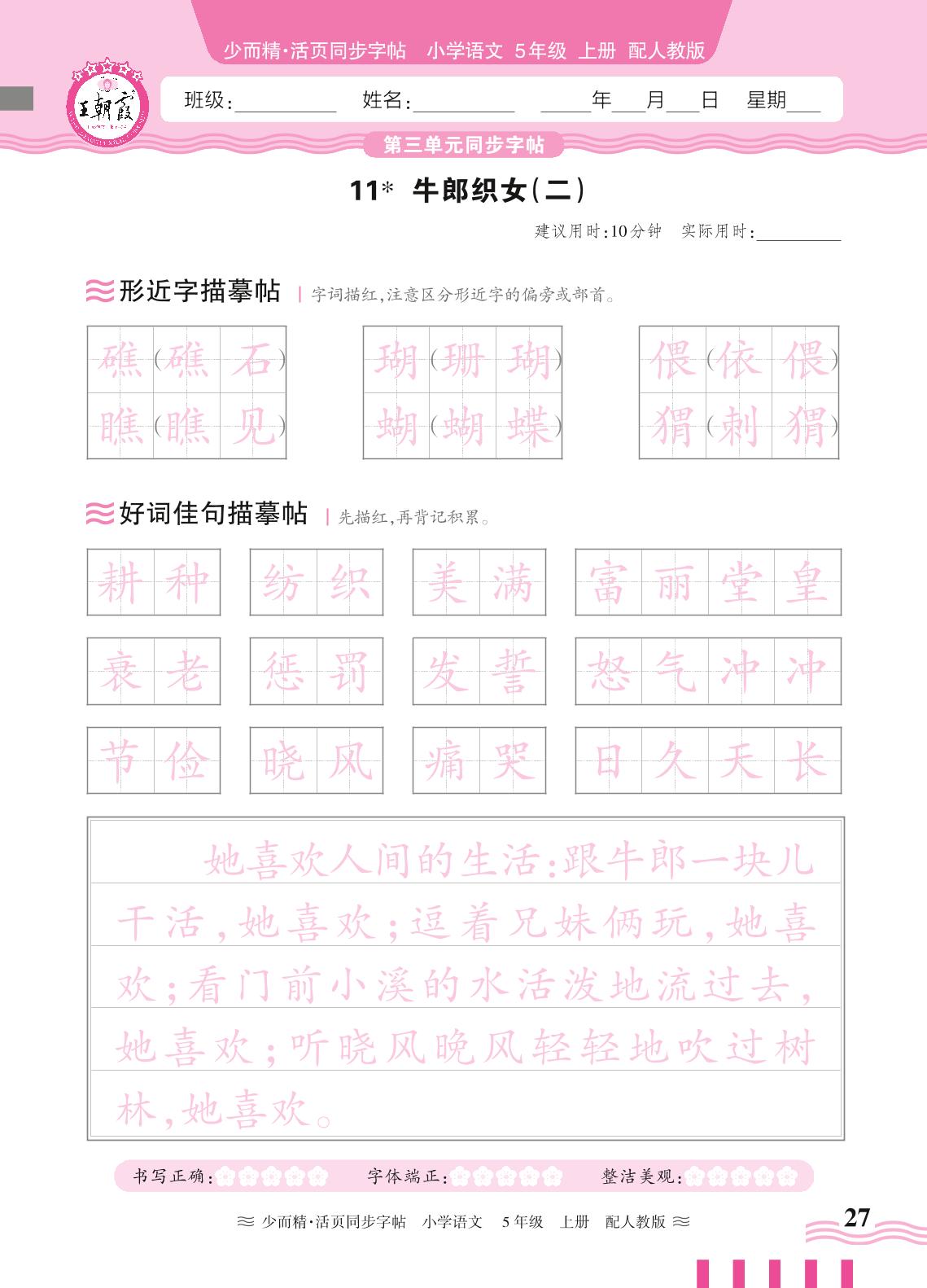 2024秋上册五年级语文人教版 第三单元同步字帖——11. 牛郎织女(二)