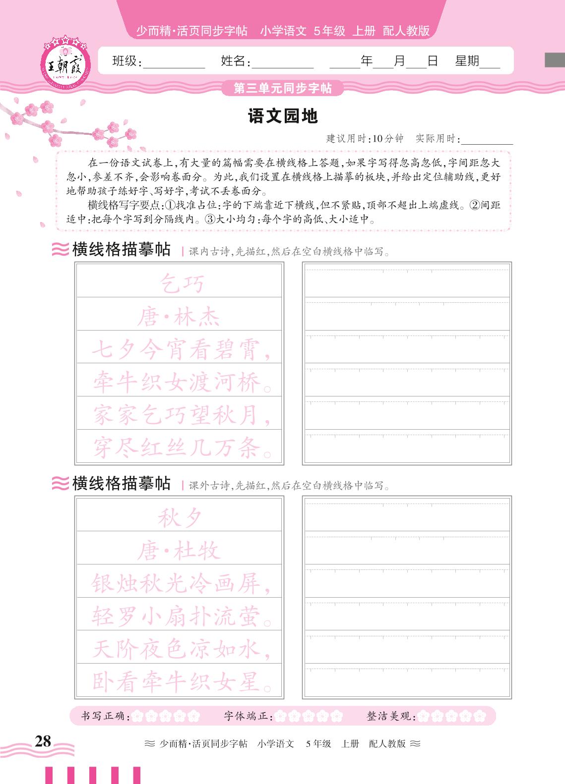 2024秋上册五年级语文人教版 第三单元同步字帖——语文园地