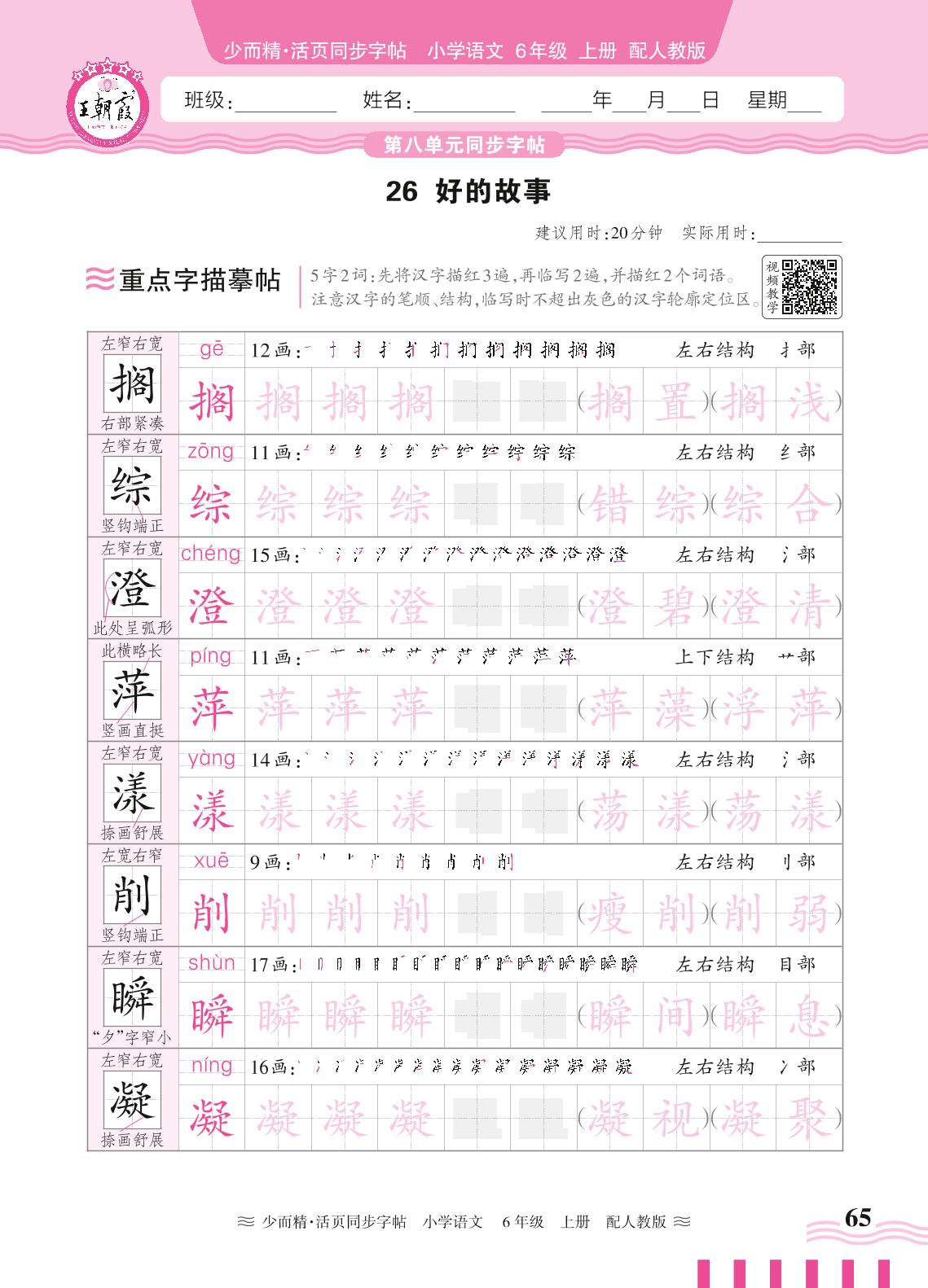 2024秋上册六年级语文人教版 第八单元同步字帖——26. 好的故事