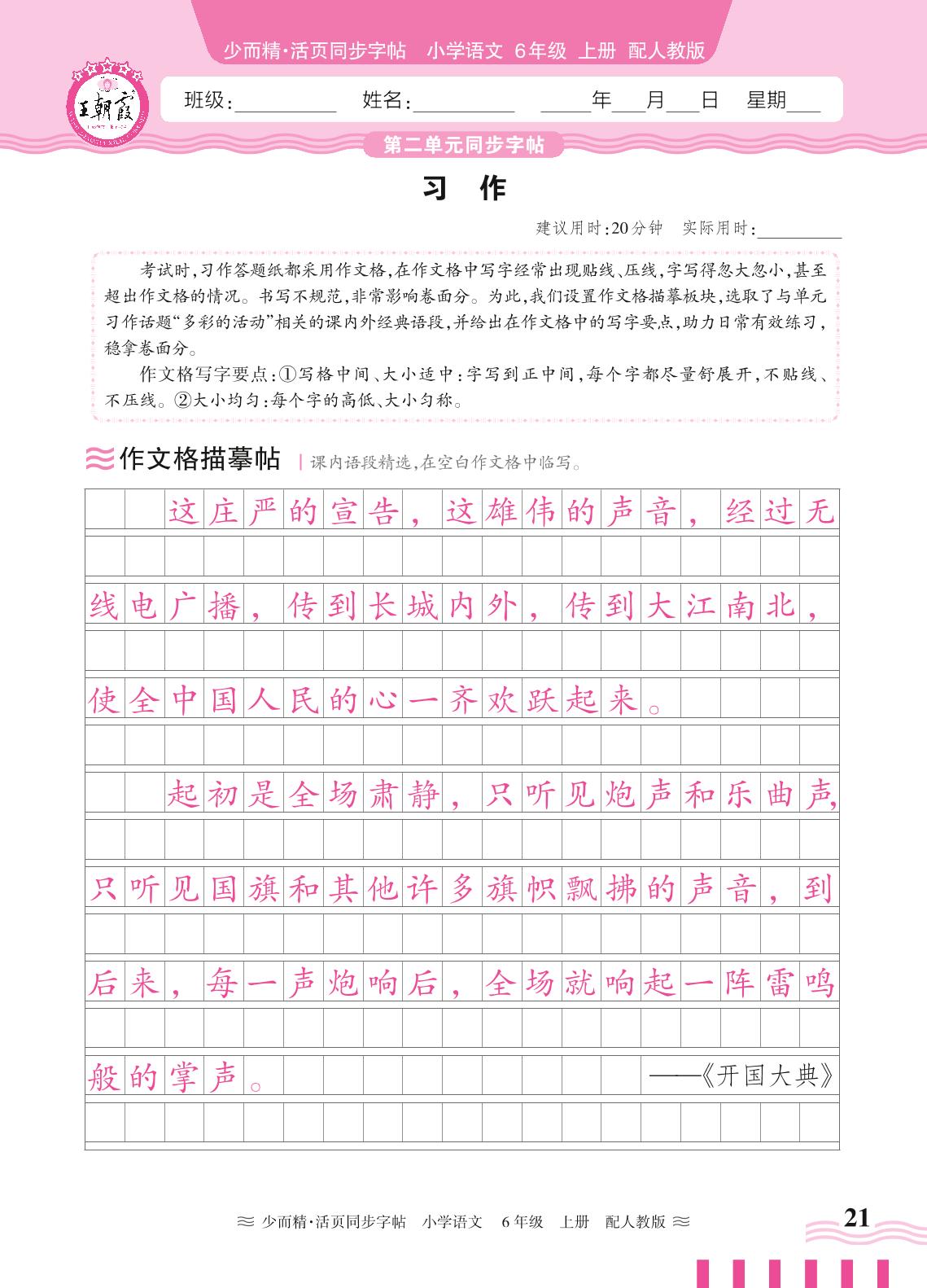 2024秋上册六年级语文人教版 第二单元同步字帖——习作