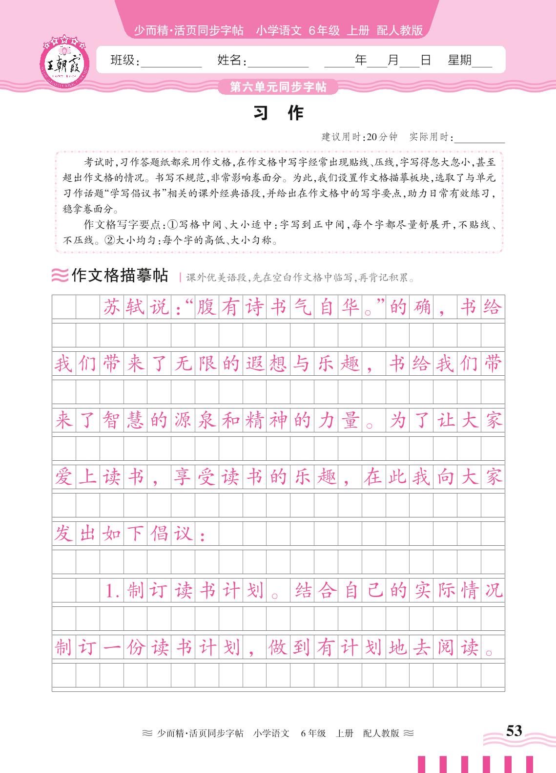2024秋上册六年级语文人教版 第六单元同步字帖——习作