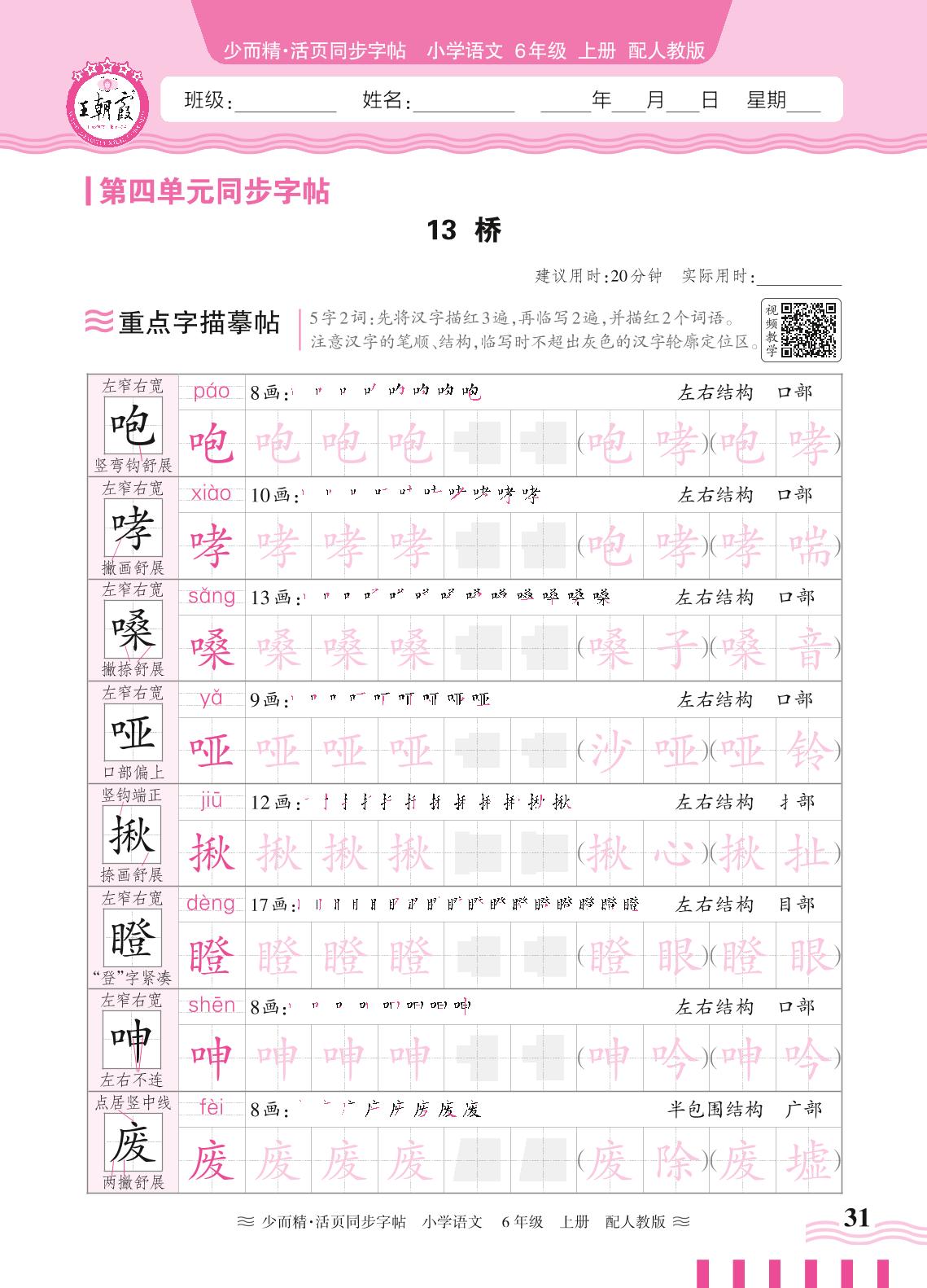 2024秋上册六年级语文人教版 第四单元同步字帖——13. 桥