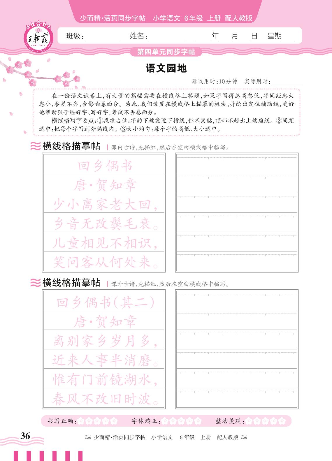 2024秋上册六年级语文人教版 第四单元同步字帖——语文园地