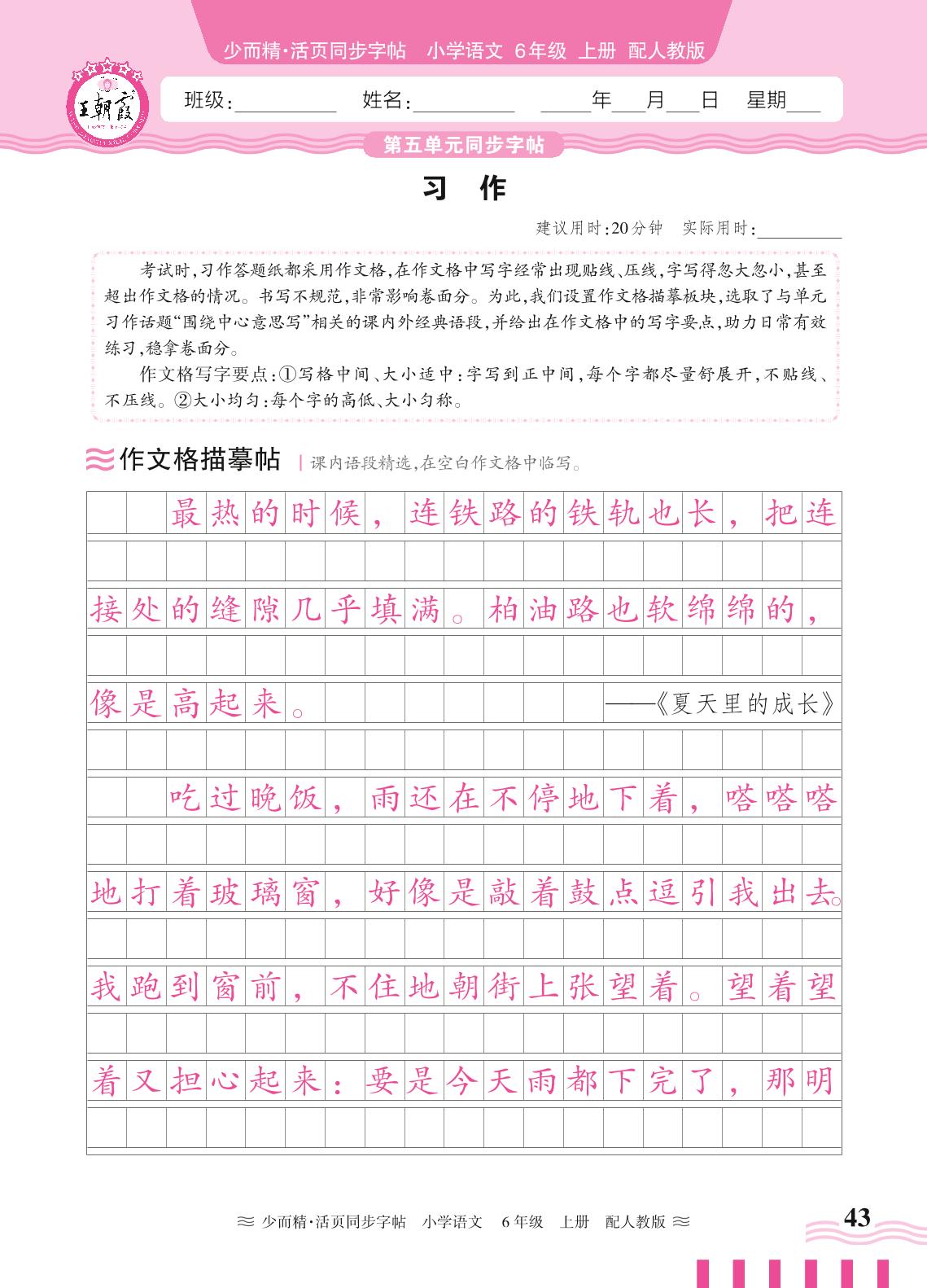 2024秋上册六年级语文人教版 第五单元同步字帖——习作