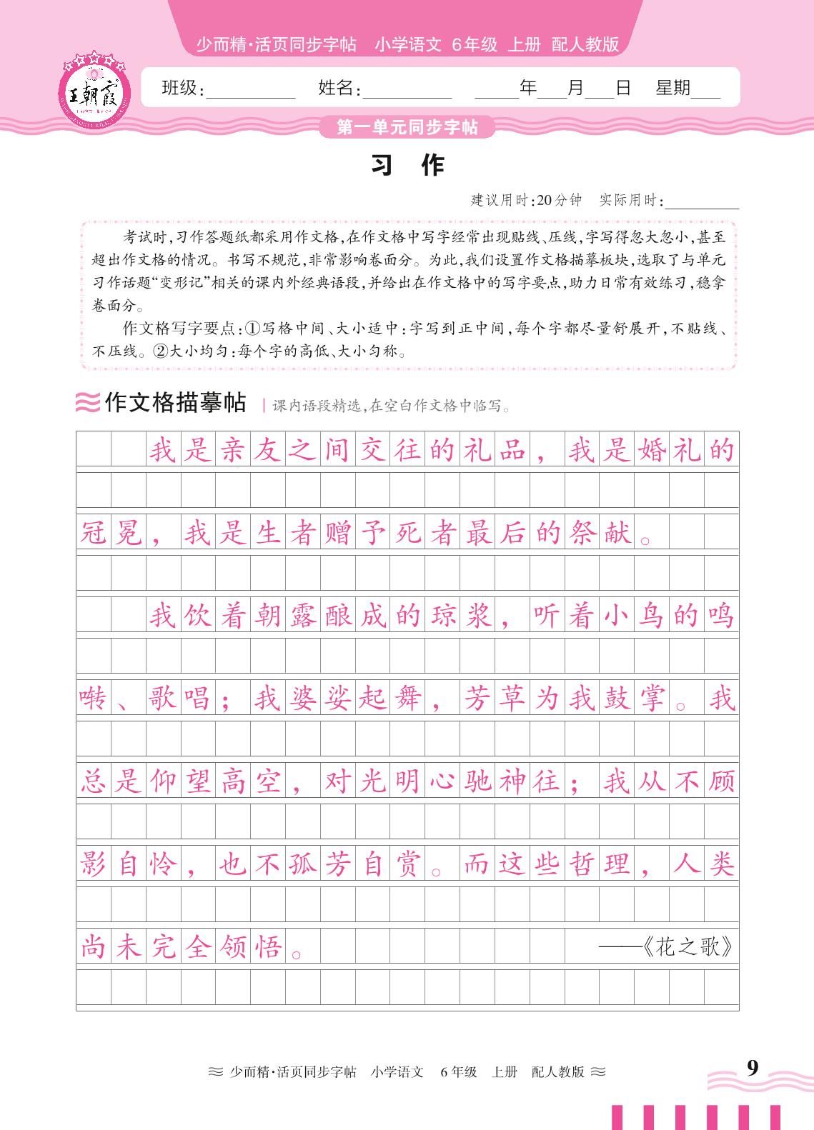 2024秋上册六年级语文人教版 第一单元同步字帖——习作