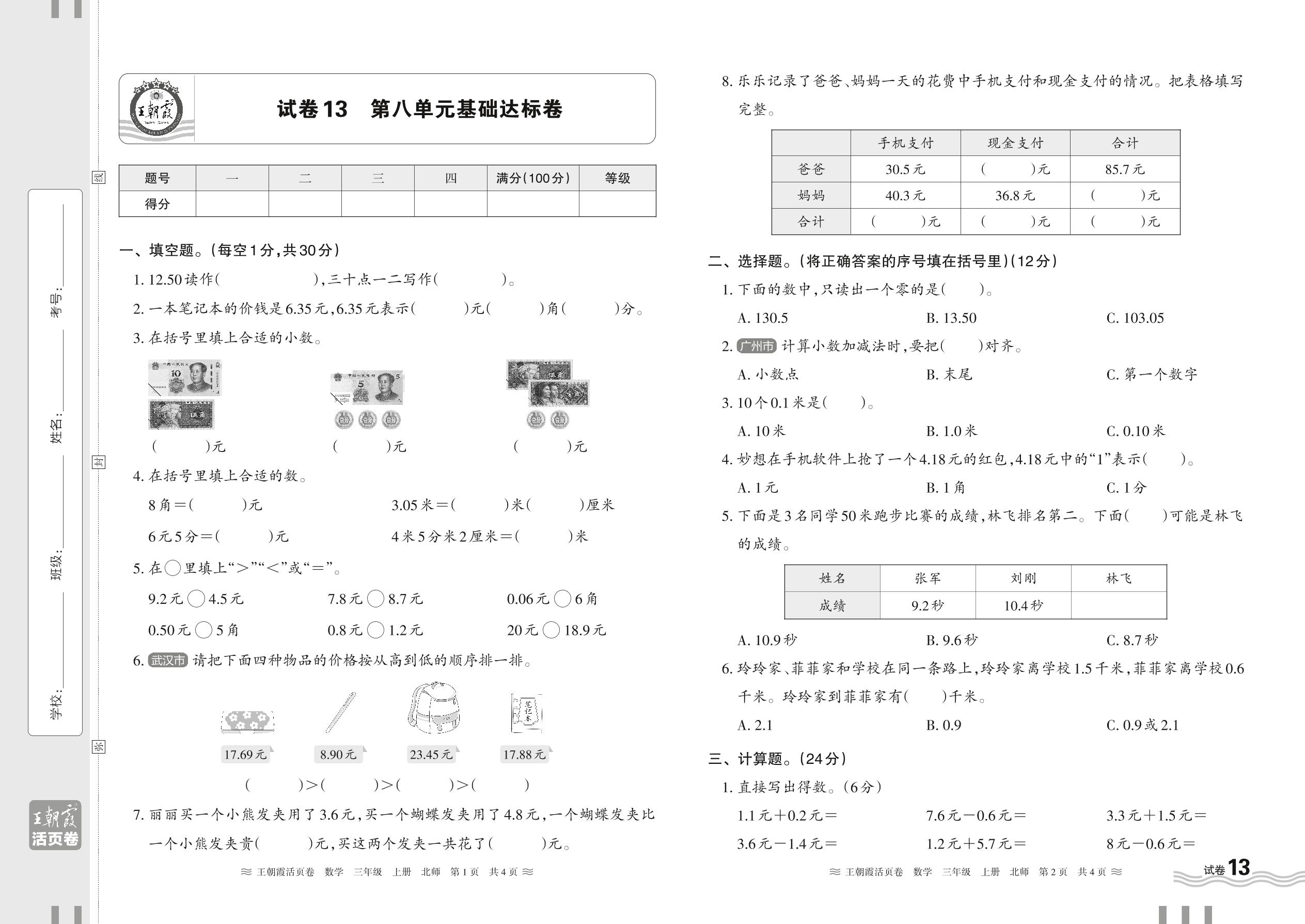 2024秋上册三年级数学北师版 第八单元基础达标卷【13】