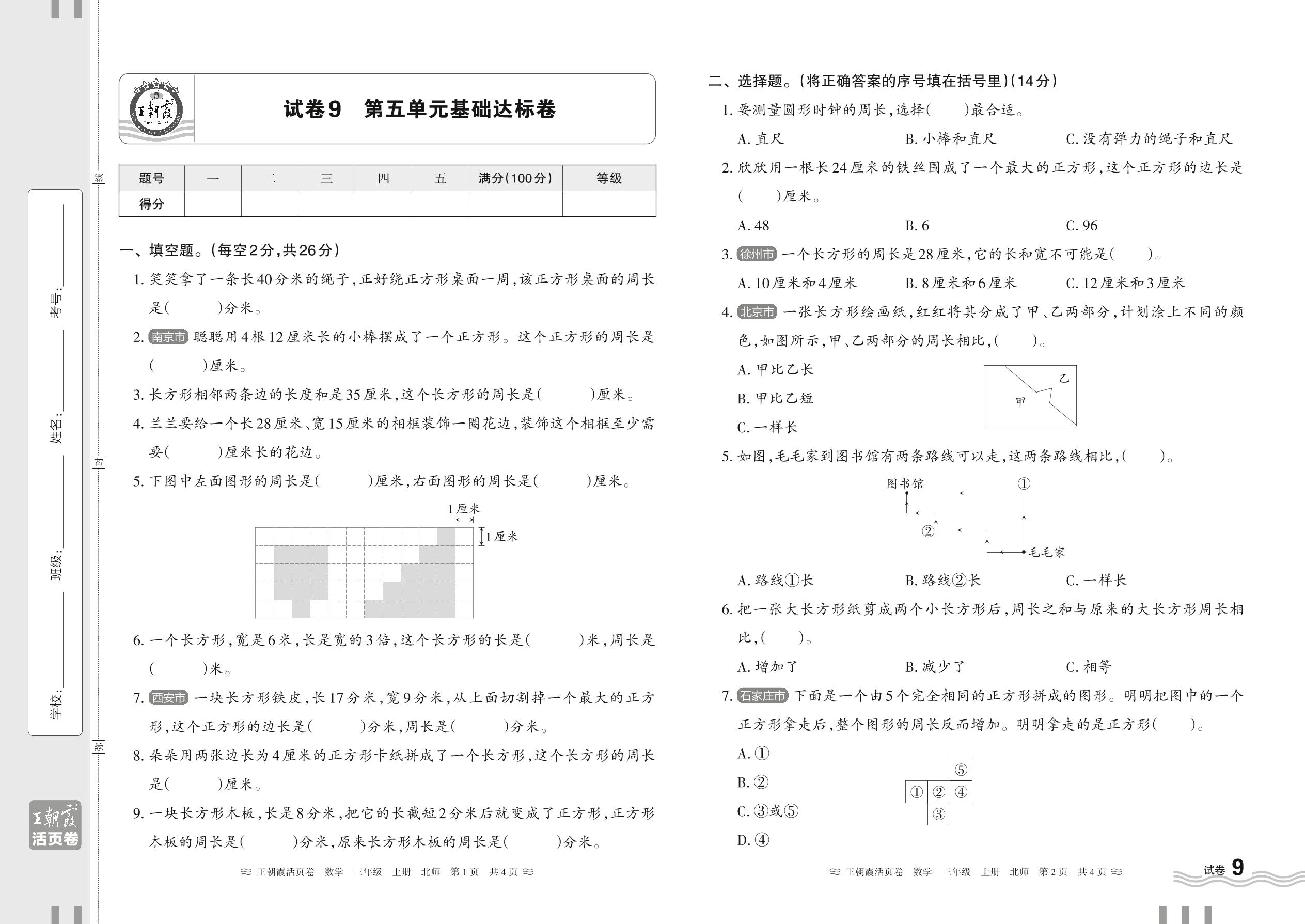 三年级数学北师版上册单元卷