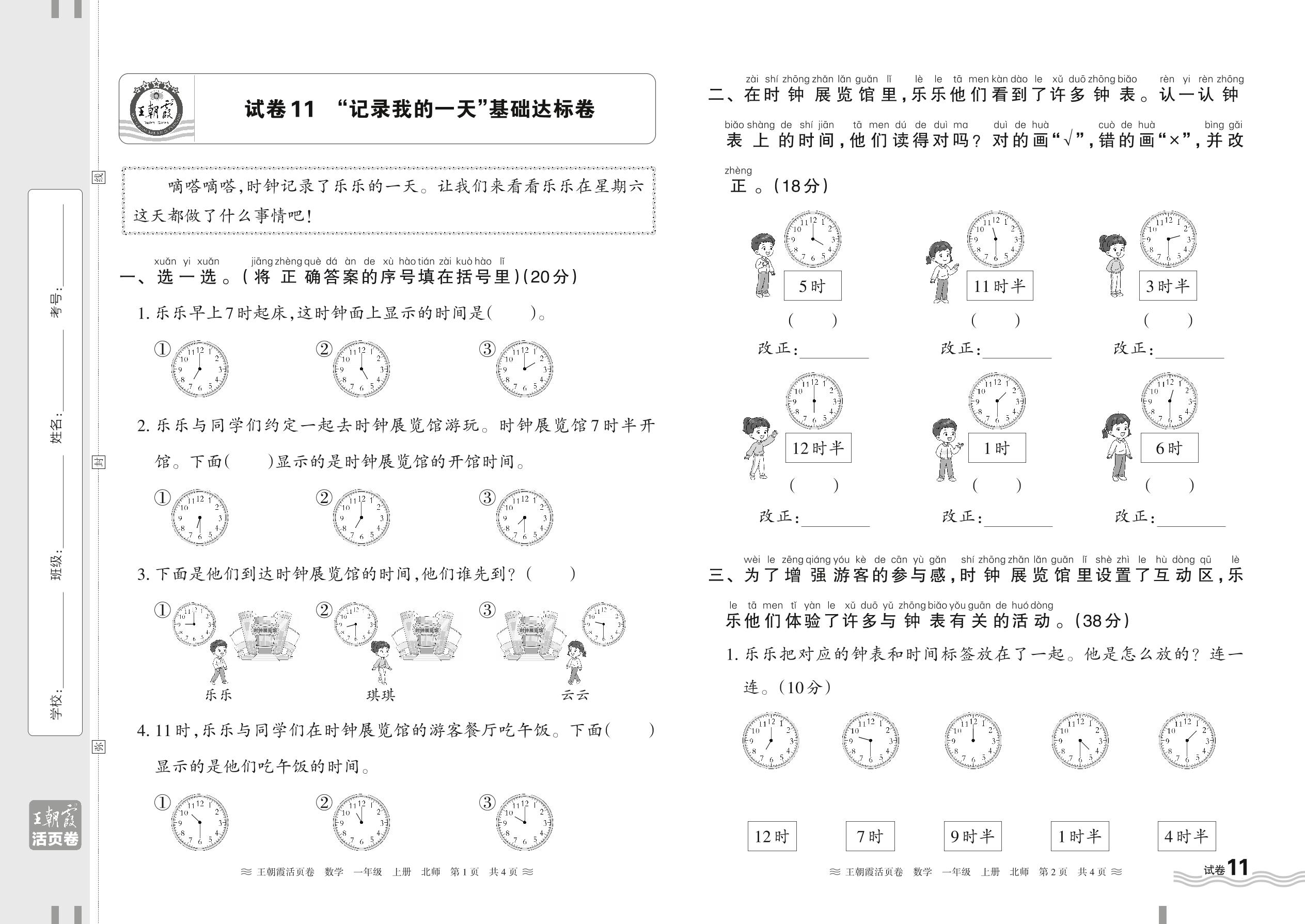 2024秋上册一年级数学北师版 “记录我的一天”基础达标卷【11】