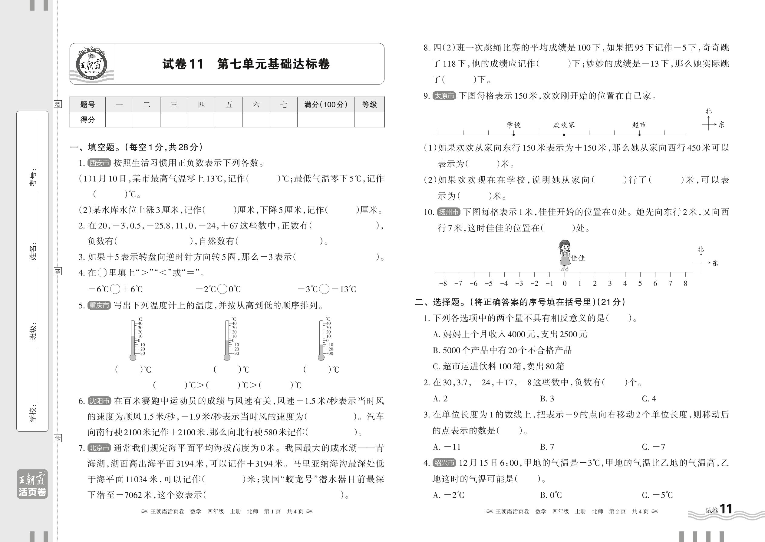 2024秋上册四年级数学北师版 第七单元基础达标卷【11】