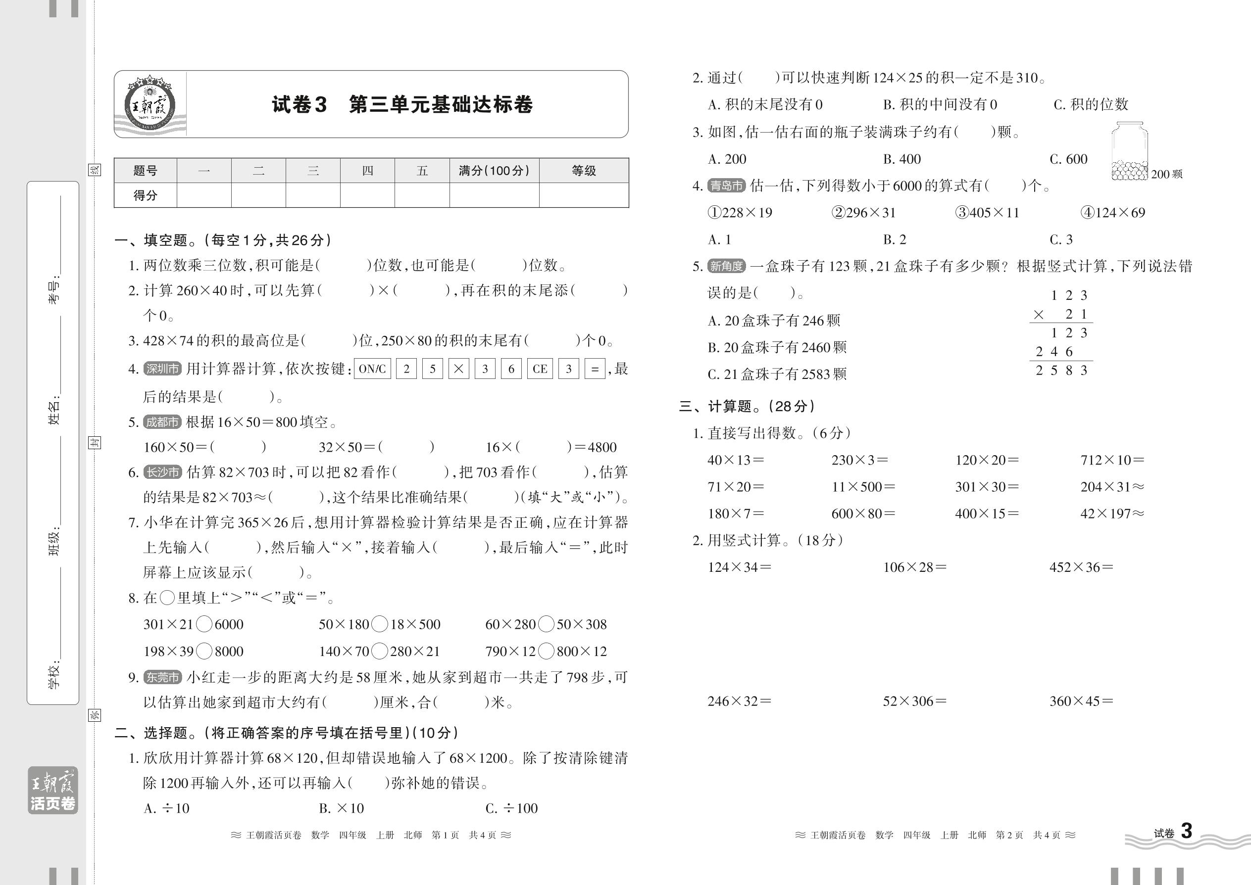 2024秋上册四年级数学北师版 第三单元基础达标卷【3】
