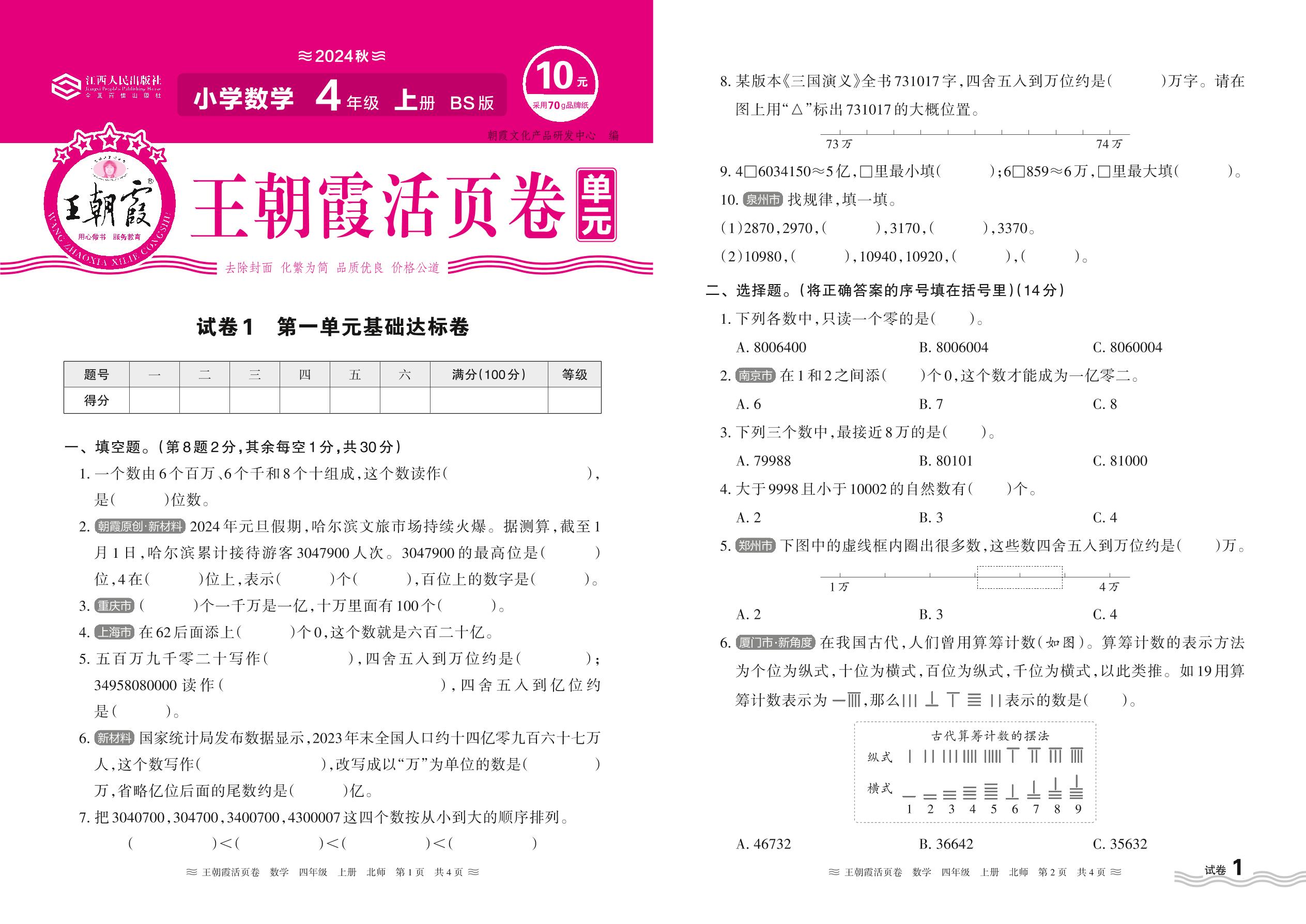 2024秋上册四年级数学北师版 第一单元基础达标卷【1】
