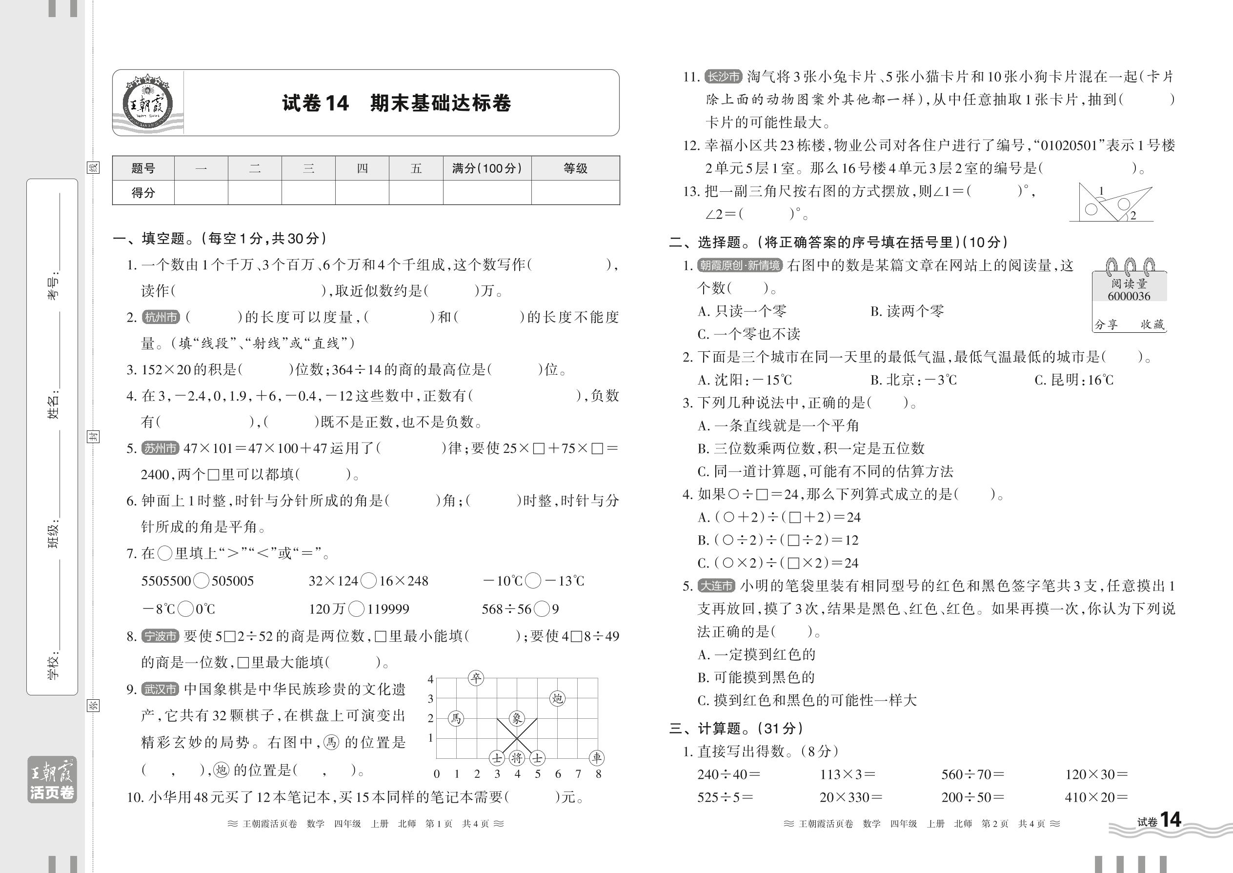 2024秋上册四年级数学北师版 期末基础达标卷【14】