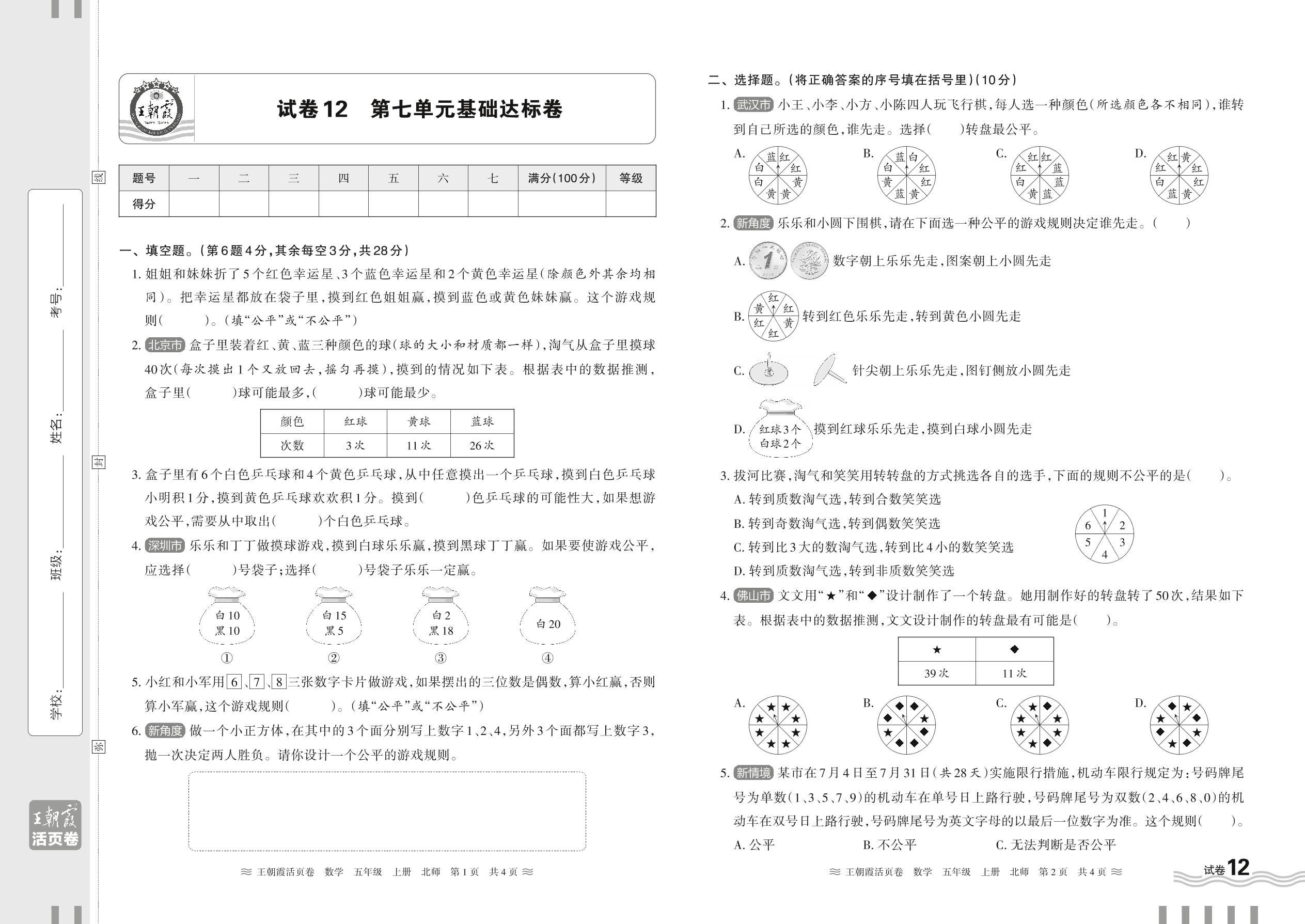 2024秋上册五年级数学北师版 第七单元基础达标卷【12】
