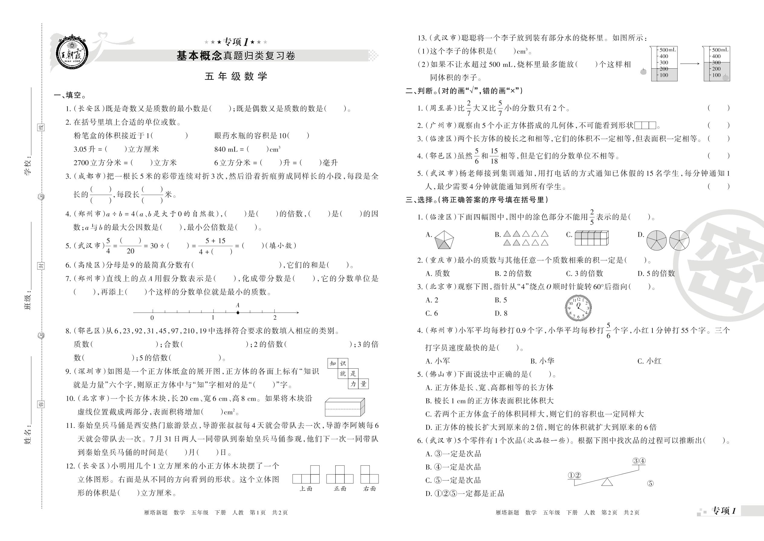 王朝霞期末专项卷——基本概念、计算真题归类复习五年级下册数学(人教版)_R210804161654【0】