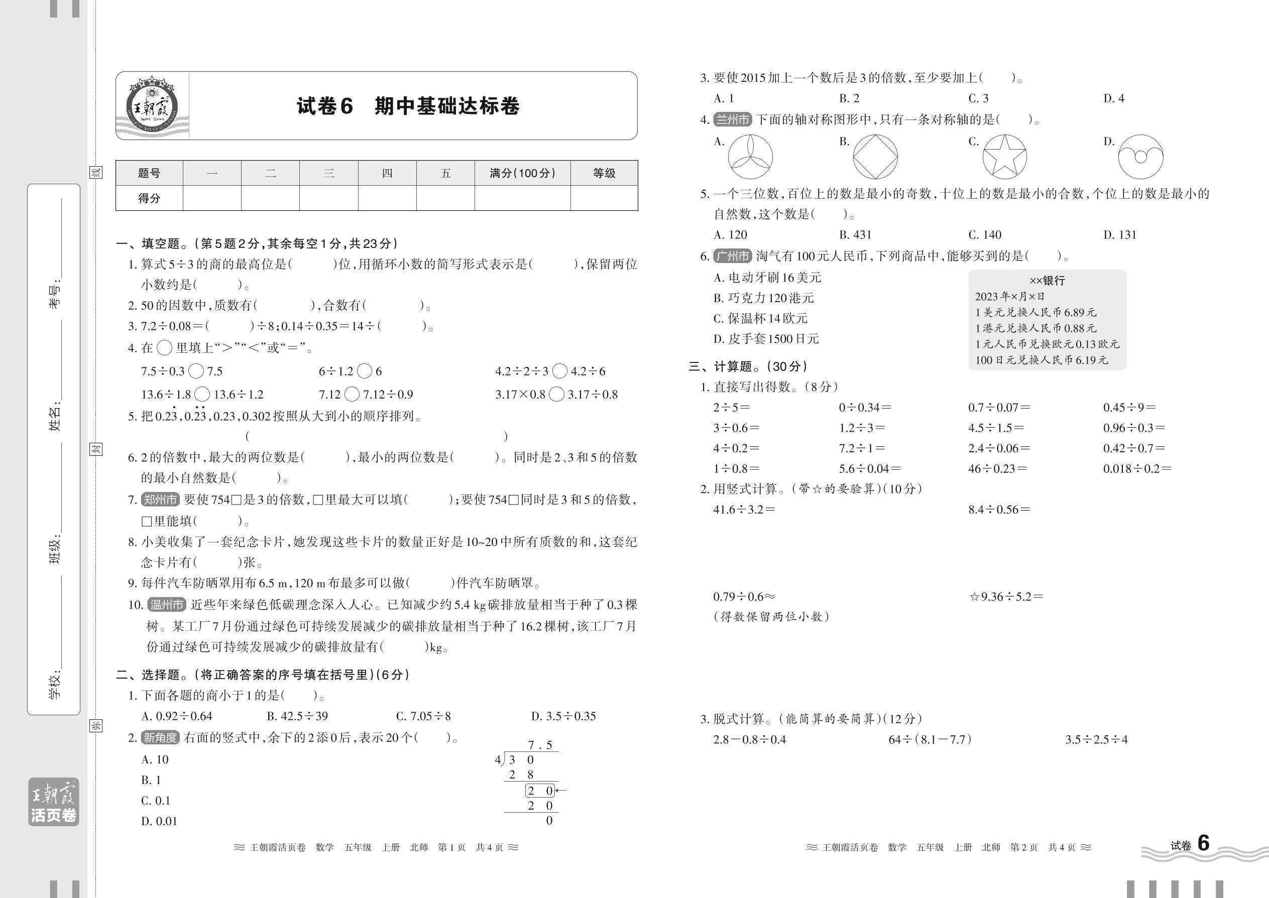 2024秋上册五年级数学北师版 期中基础达标卷【6】