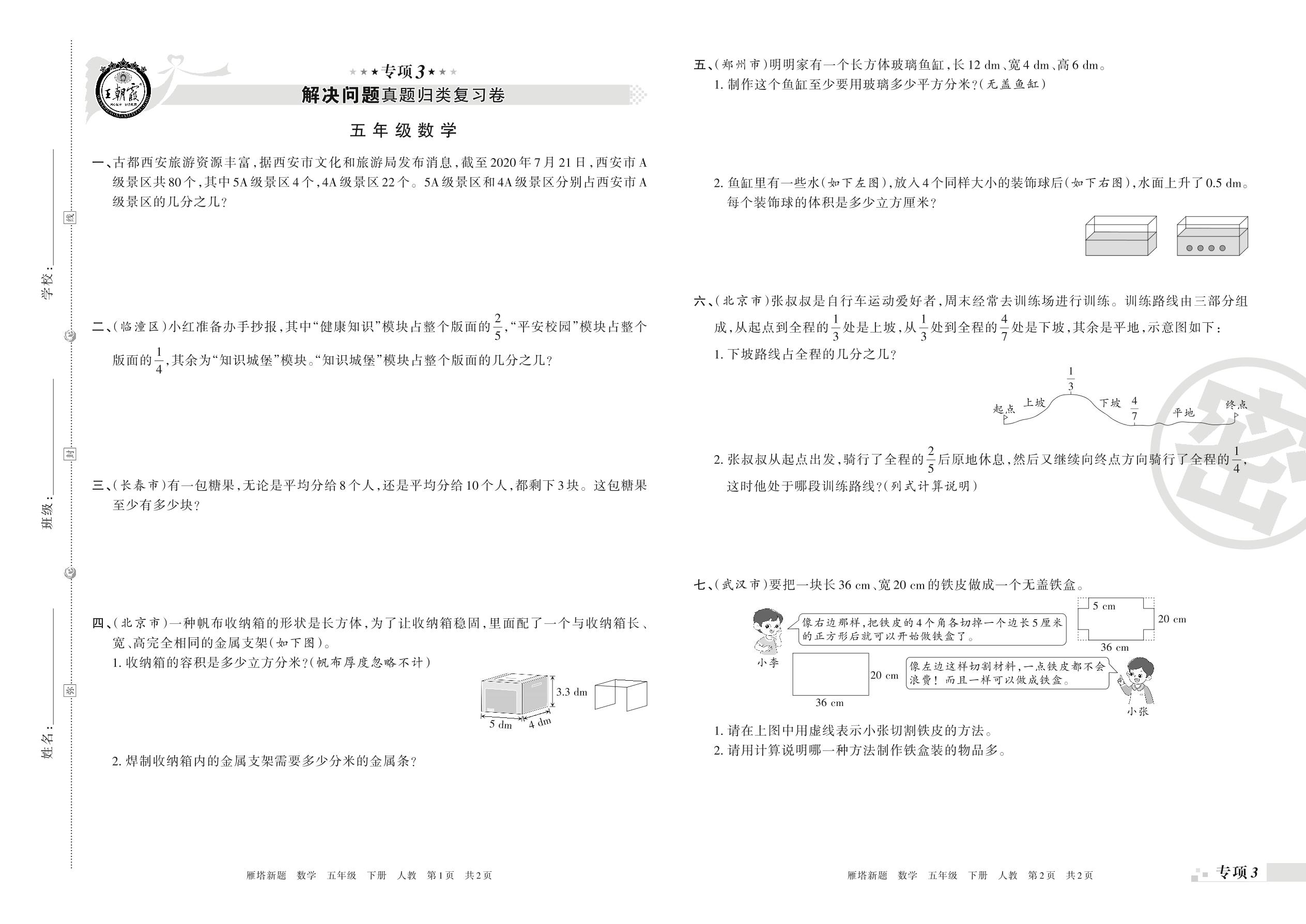 王朝霞期末专项卷——解决问题真题归类复习、新颖题速递:生活与数学五年级下册数学(人教版)_R210804161657【0】